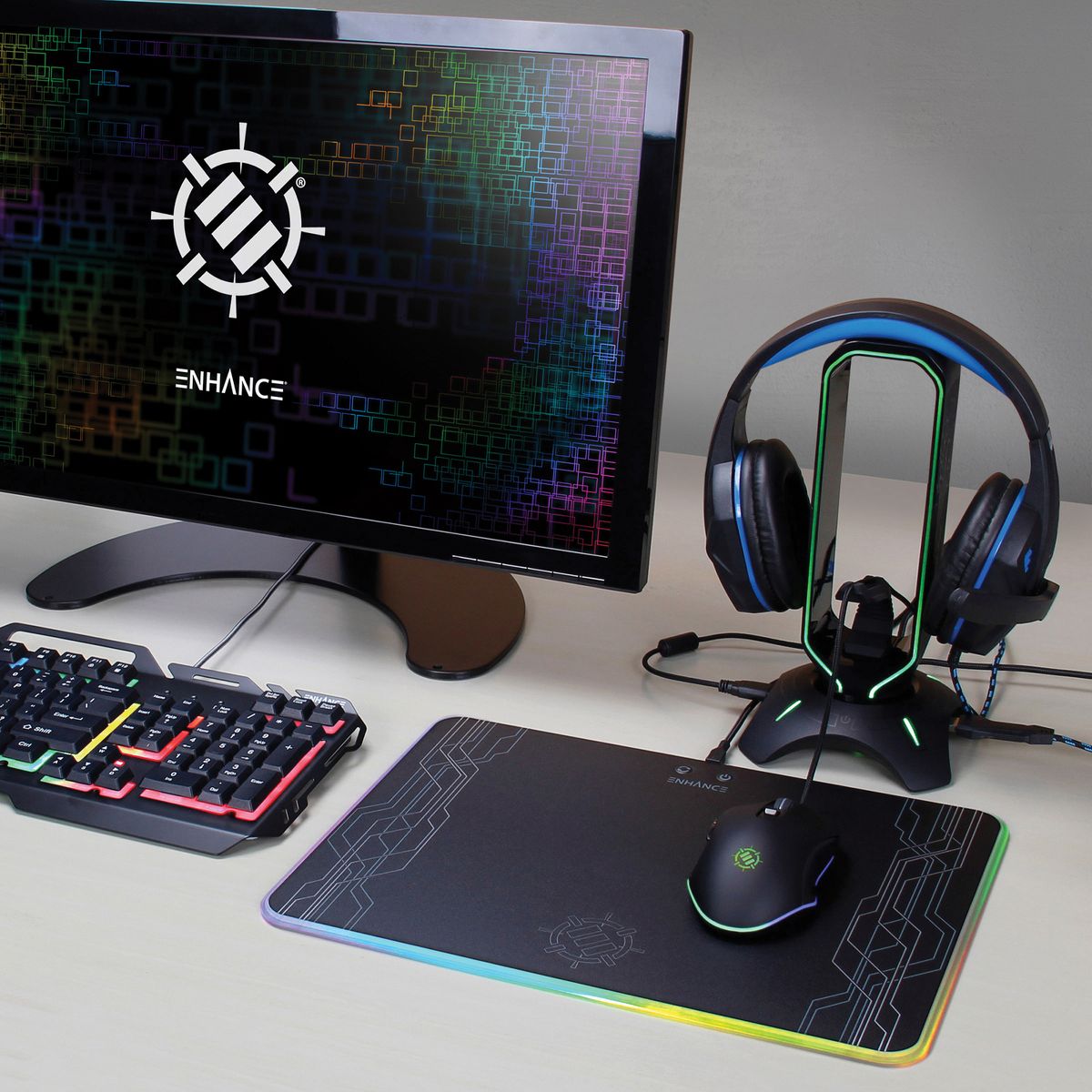 ENHANCE Gaming Headset Stand with Mouse Bungee and LED Accents, Black
