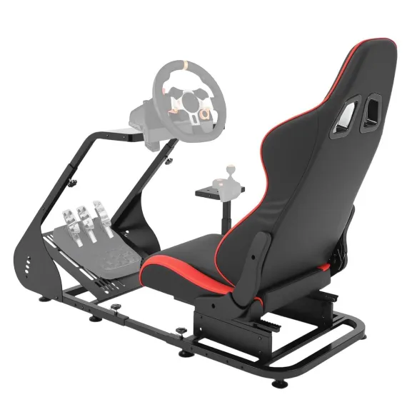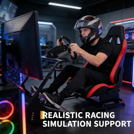 This racing stand provides a firm base for immersive play. Its reinforced steel frame remains secure during use. It fits a range of popular racing peripherals via adaptable mounting points. The design focuses on personal comfort, featuring an adjustable wheel mount, a multi-use shifter holder, and variable pedal positioning. The unit is upholstered for comfort during long sessions and folds away neatly, making it a practical choice for spaces of any size. Professional installation is recommended for optimal assembly.
