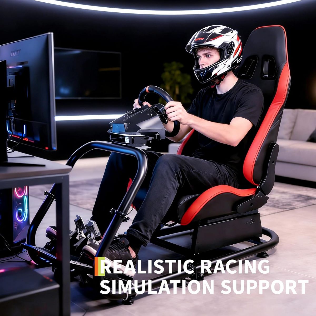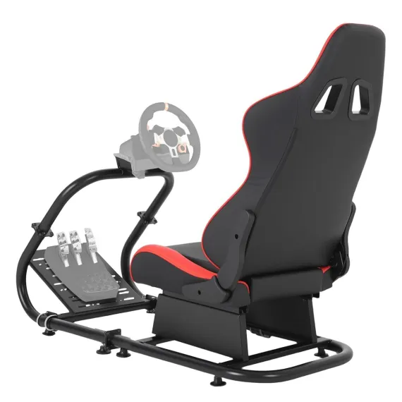 This racing stand provides a firm base for immersive play. Its reinforced steel frame remains secure during use. It fits a range of popular racing peripherals via adaptable mounting points. The design focuses on personal comfort, featuring an adjustable wheel mount, a multi-use shifter holder, and variable pedal positioning. The unit is upholstered for comfort during long sessions and folds away neatly, making it a practical choice for spaces of any size. Professional installation is recommended for optimal assembly.