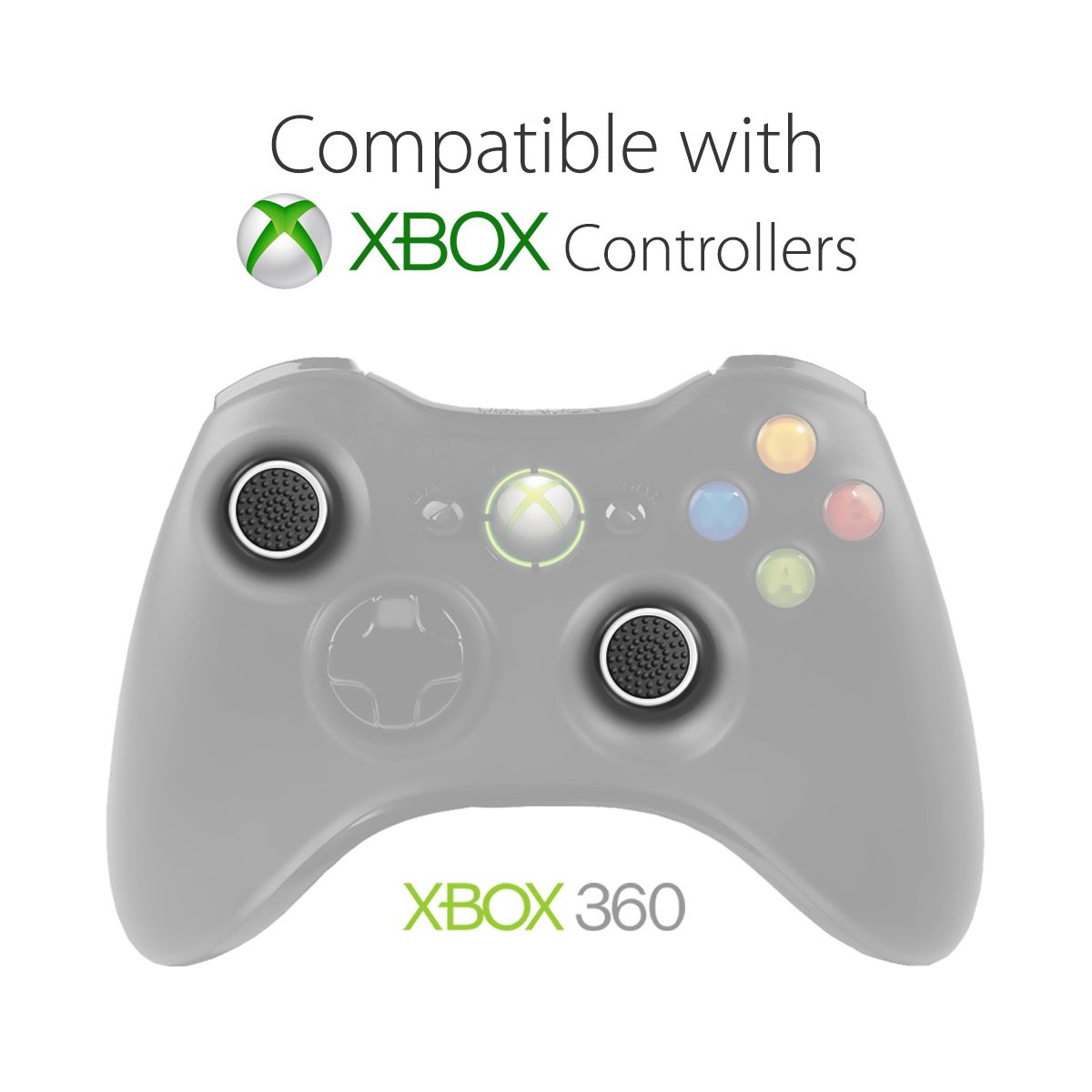 Help protect your Switch 2, PS5, PS4, PS3, Xbox Series S, Xbox Series X, Xbox 360, Wii U, and Wii Nunchuk analog sticks by adding thumb grip caps.