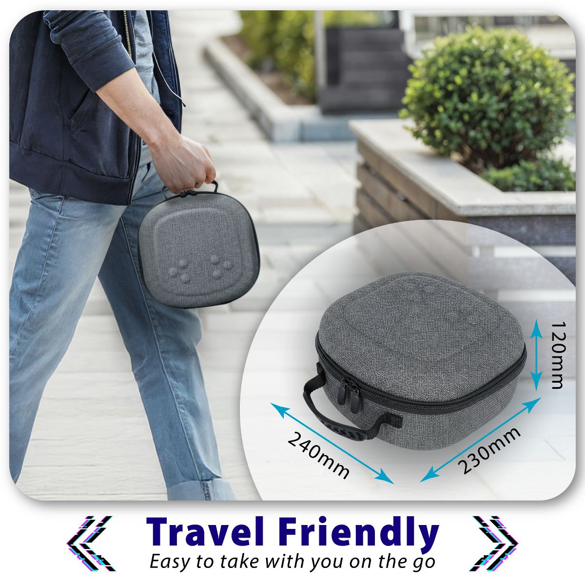 Easily store your VR headset in this compact 9 x 9 x 4.7in case perfect for keeping your VR headset protected in storage or while you travel.