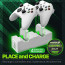 This Quad Pro 2 controller charger can charge up to 4 batteries at a time. 2 batteries can be docked into the charging slots while 2 controllers equipped with the batteries can be placed on top to charge. Remove the need for multiple cables and docks and charge up to 4 batteries in one easy to use station.