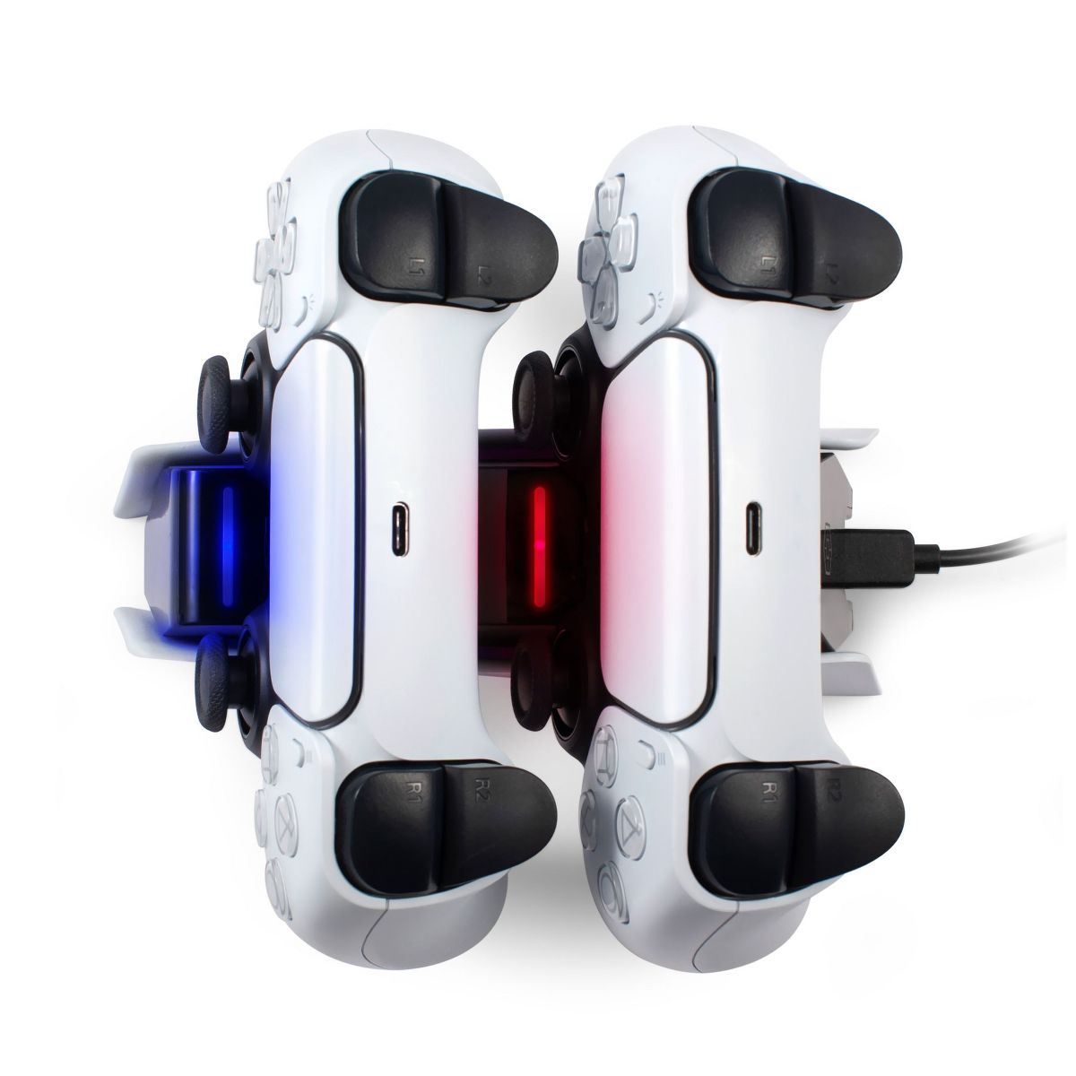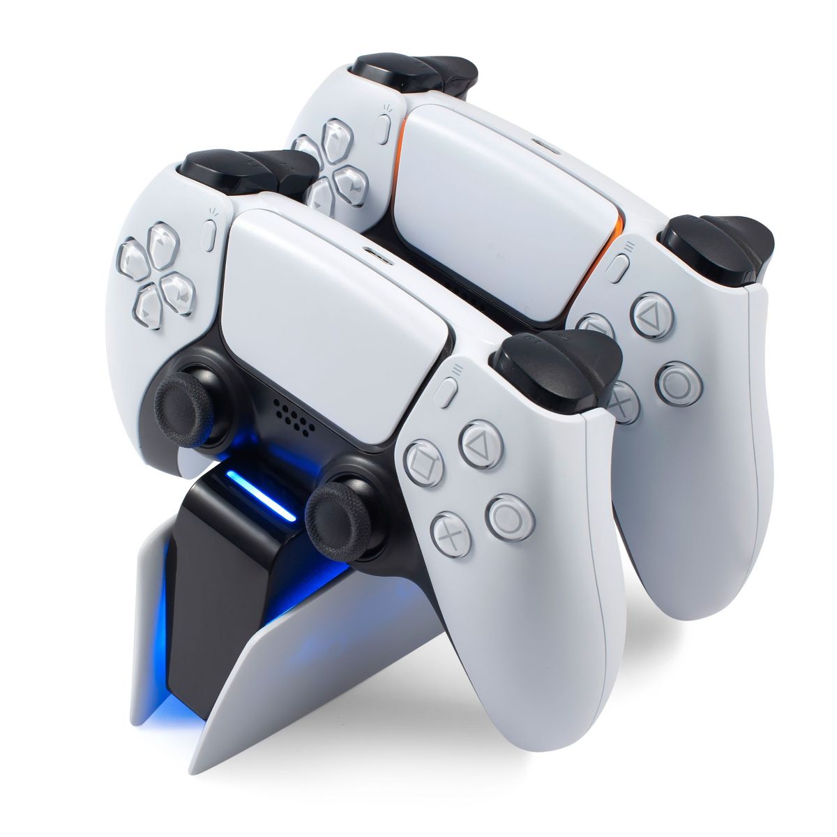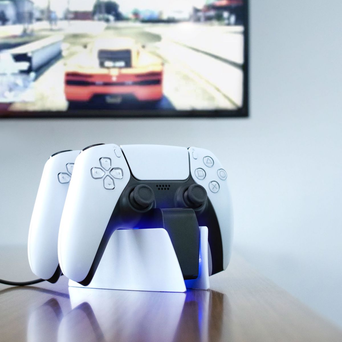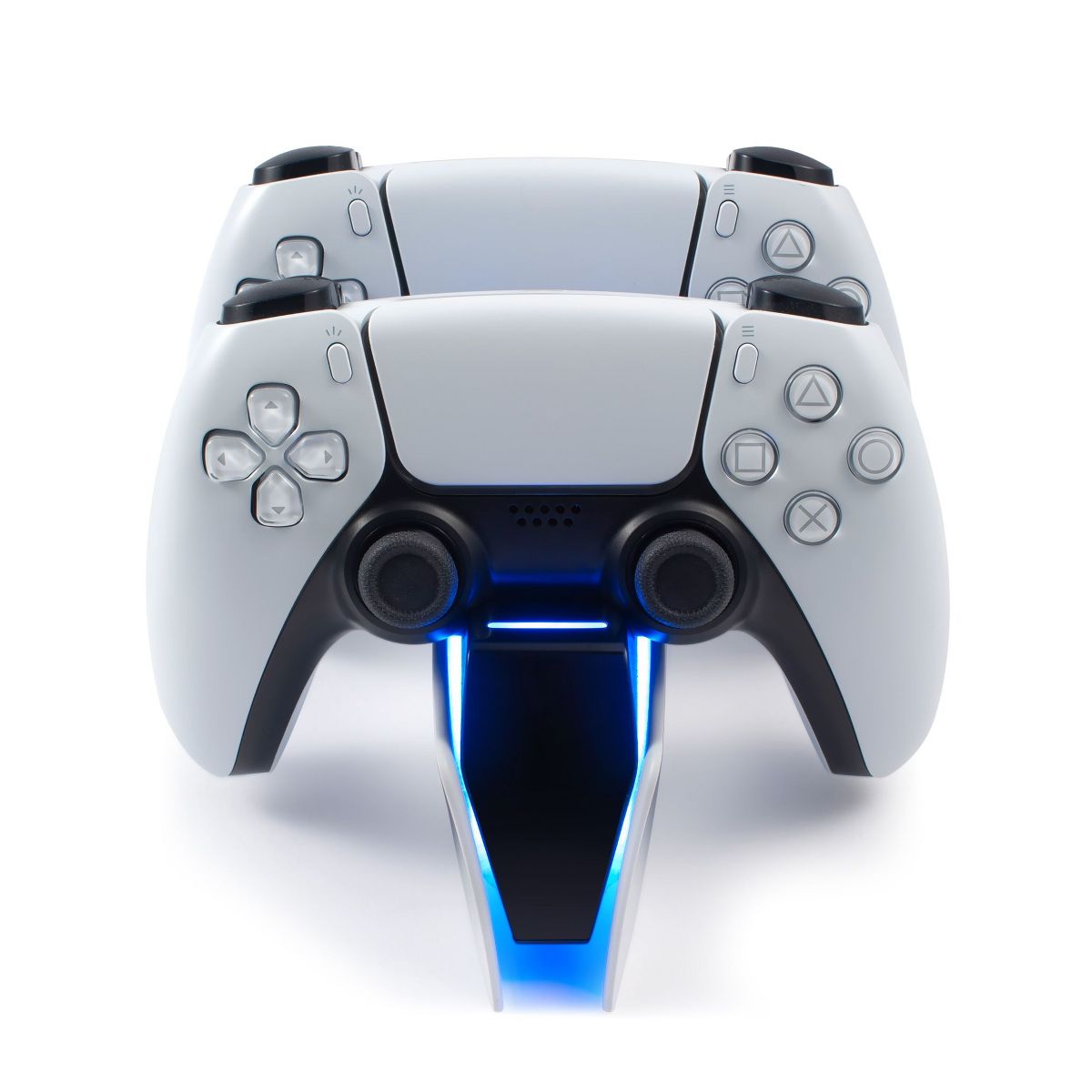 Functional display stand and charging station compatible with PS5 controller. Charges up to 2 controllers simultaneously. Fast and time-efficient, your controllers will always be ready to play. High speed charging gets your controllers a full charge in just 2.5 hours.