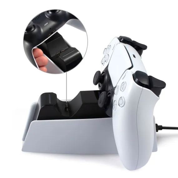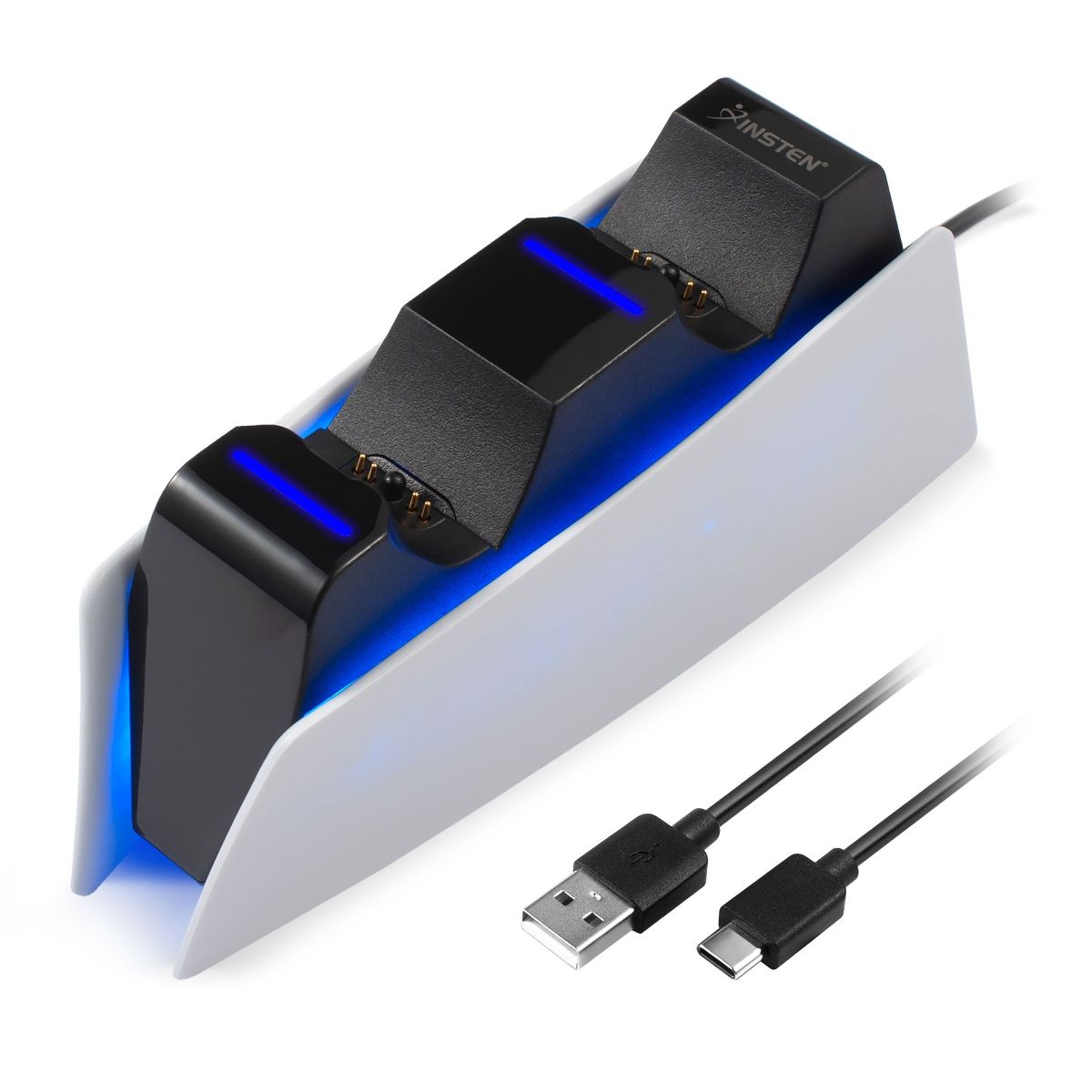 Insten Charging Station for PS5 Controller, USB-C Fast Dual Charger & Dock with LED Indicator for Sony Playstation 5, Gaming Accessories, White