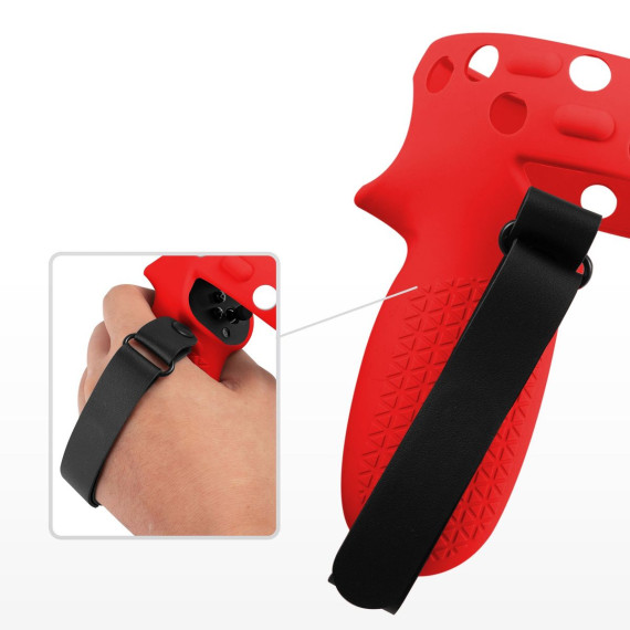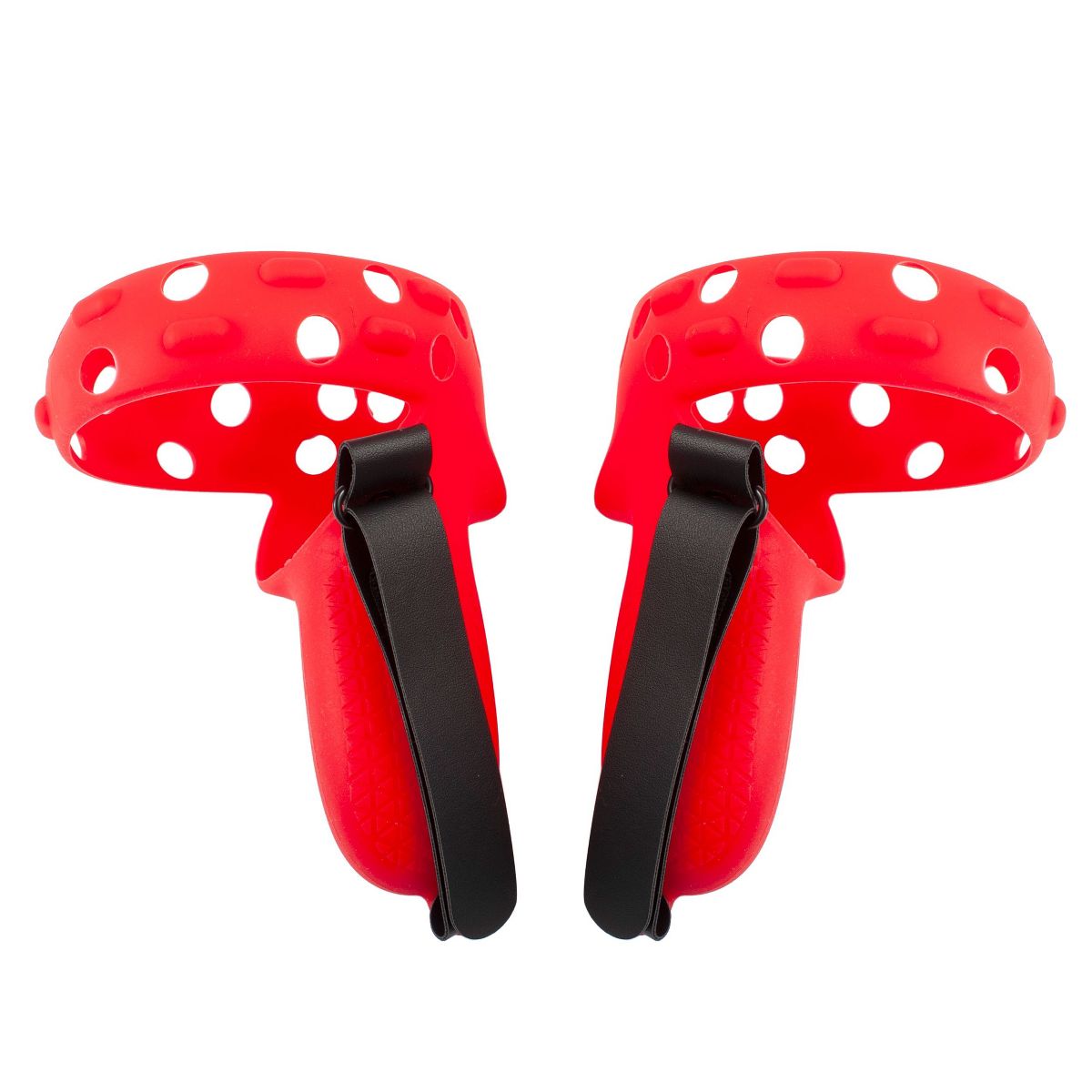 Insten Insten Controller Grips for Oculus Quest 2 Meta VR Headset, Silicone Cover with Straps & Joystick Cover (Red, 1 Pair)