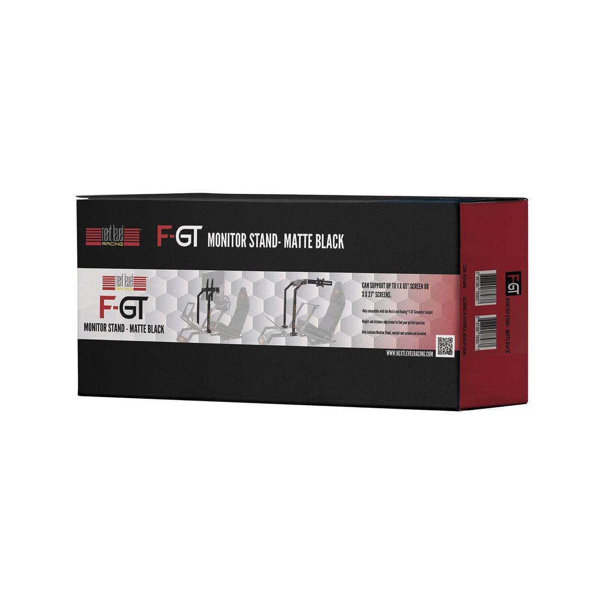 The Next Level Racing F-GT Monitor Stand in Matte Black offers an immersive racing experience by allowing users to attach screens at the optimal height and distance for their simulator cockpit. Capable of supporting 1 to 3 screens, it allows a gradual upgrade from a single screen to a full three-screen setup as desired. The stand's fully adjustable design ensures that users can position their monitors to achieve an ideal setup for gaming. Now you can enhance your racing simulations with an accessory designed for compatibility and functionality.