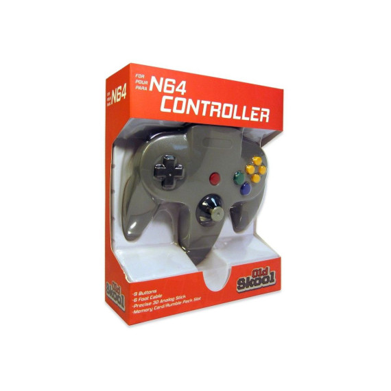 The Old Skool N64 controller has the same shape and feel as Nintendo's original design. Featuring 10 active buttons (including Left and Right shoulder functions, and Z-trigger) The analog stick is as precise as it gets while the legendary D-pad offers a classic gaming feel. The controller's data port is compatible with any N64 Rumble or Memory Pak, Our controller Sports 6-foot long cord. This is the perfect replacement for your broken or lost Nintendo 64 controller.