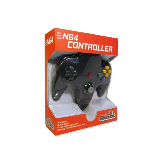 The Old Skool N64 controller has the same shape and feel as Nintendo's original design. Featuring 10 active buttons (including Left and Right shoulder functions, and Z-trigger) The analog stick is as precise as it gets while the legendary D-pad offers a classic gaming feel. The controller's data port is compatible with any N64 Rumble or Memory Pak, Our controller Sports 6-foot long cord. This is the perfect replacement for your broken or lost Nintendo 64 controller.