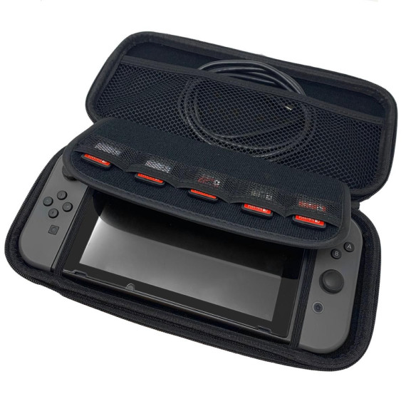 The Old Skool Travel Case for Switch and Switch Lite was designed to help you take your console and accessories on the go or for store your device when not in use. Keeps device safe and secure while also storing up to 5 games. Includes extra space for accessories and wires, scratch proof inner material, and inner pocket for added storage.