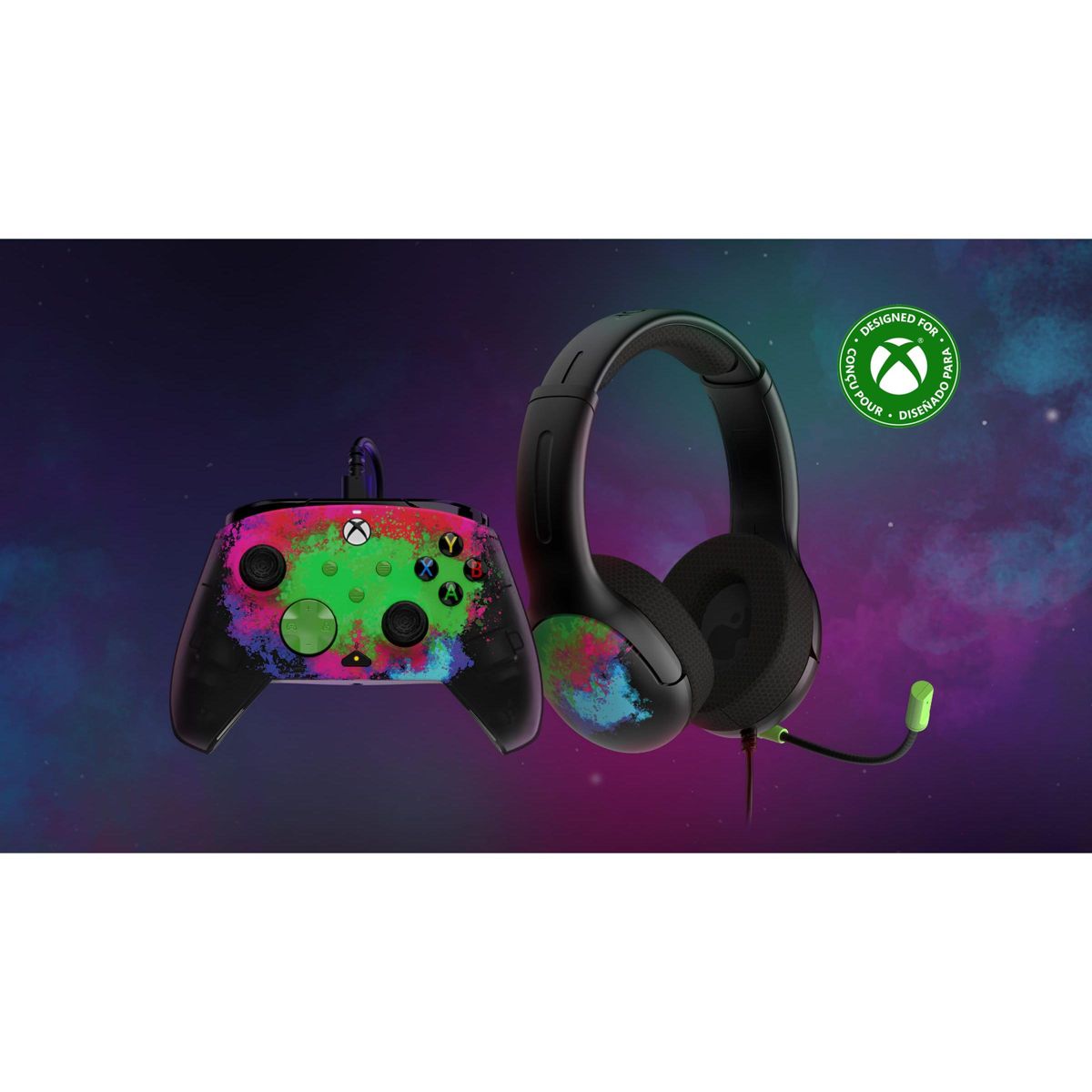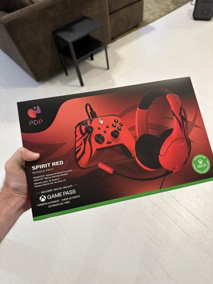 Play all day with the Spirit Red AIRLITE Wired Headset and REMATCH Advanced Wired Controller. This perfectly paired duo was built for comfort and immersive gameplay! Plug the thoughtfully designed headset into the customizable controller for the perfect audio partner for Xbox. Map controller functions with the REMATCH Advanced Wired Controller's programmable back buttons, and improve accuracy with the textured grips, thumbsticks, triggers, and bumpers. Get the free PDP Control Hub app to re-map buttons, reconfigure triggers, adjust deadzones, update controller firmware, and more. Enjoy the AIRLITE Wired Headset's soft, padded headband and earcups for all-day comfort, while the finely tuned, 40mm speakers provide an immersive gaming experience. Quickly make audio adjustments with the controller's built-in volume controls, or the headset's on-ear volume controls. Give clear commands through the noise-canceling mic or flip it up to mute when you need to go off comms. For the ultimate upgrade in your gaming, get this officially licensed headset and controller combo.