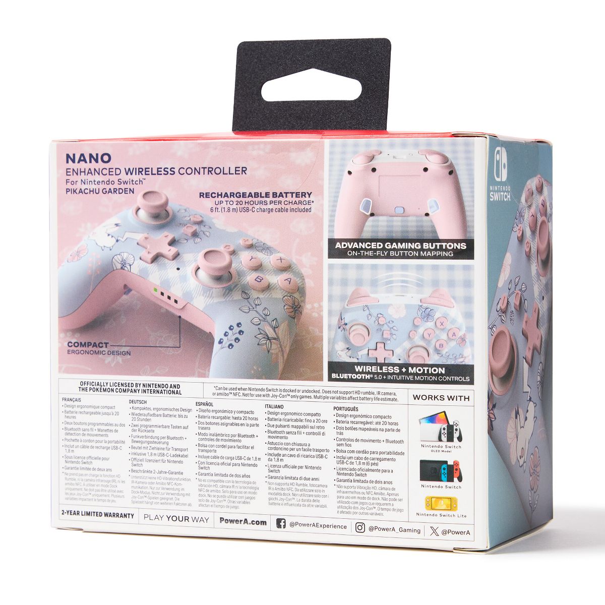 PowerA Nano Enhanced Wireless Controller for Nintendo Switch - Pikachu Garden: Bluetooth Tech