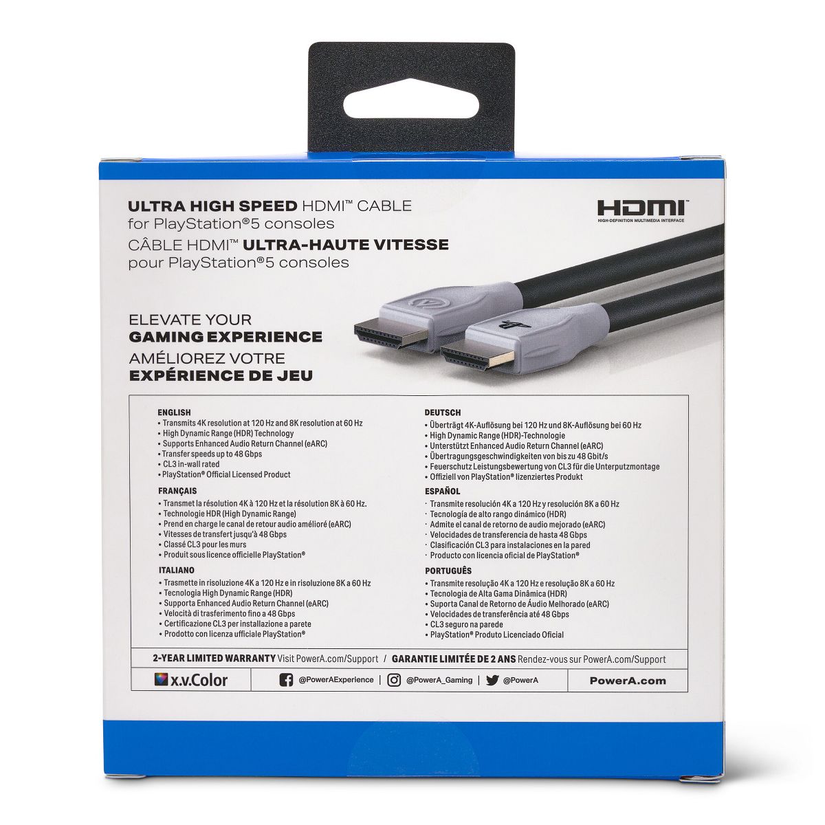 Connect your PlayStation 5 to any HDMI-compatible display with this officially licensed 10-foot Ultra High Speed HDMI Cable with included cable tie. Get crystal-clear picture and crisp, perfect sound from your favorite console. Experience uninterrupted speed and maximum visual performance from every game in your PlayStation 5 library. Transmits 4K resolution at 120 Hz and 8k resolution at 60 Hz as specified in HDMI 2.1, plus it supports up to 48Gbps bandwidth, dynamic HDR, and eARC.