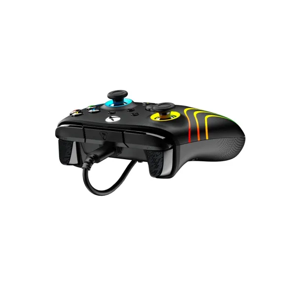 Unlock elevated gaming performance and style with the Turtle Beach® Afterglow™ Wave wired RGB gaming controller, officially licensed for Xbox & PC. Hall-Effect 3-stop adjustable impulse triggers offer smooth, long-lasting, and adjustable control, and dual rumbles motors provide enhanced gaming immersion. Customize the style and controls of your Afterglow™ Wave with Intelligent RGB lighting and two mappable quick-action buttons. Stay locked in with patented audio for game/chat volume mix, master volume, and mic mute. Download the Control Hub companion app for Xbox consoles & Windows PCs giving you advanced customization options for lighting, button mapping, as well as controller configuration and diagnosis
