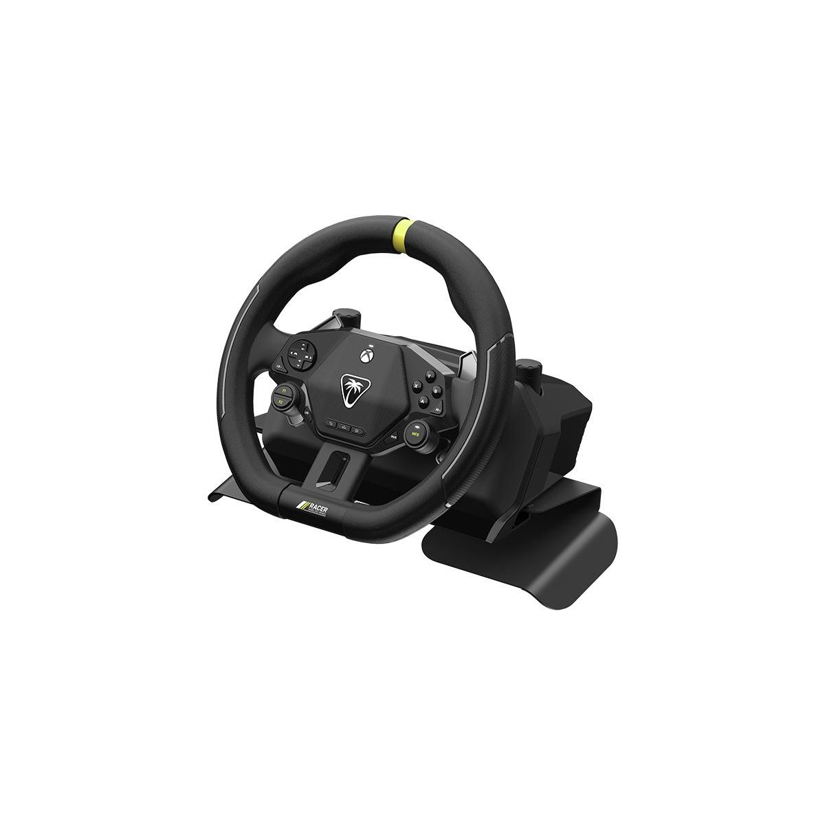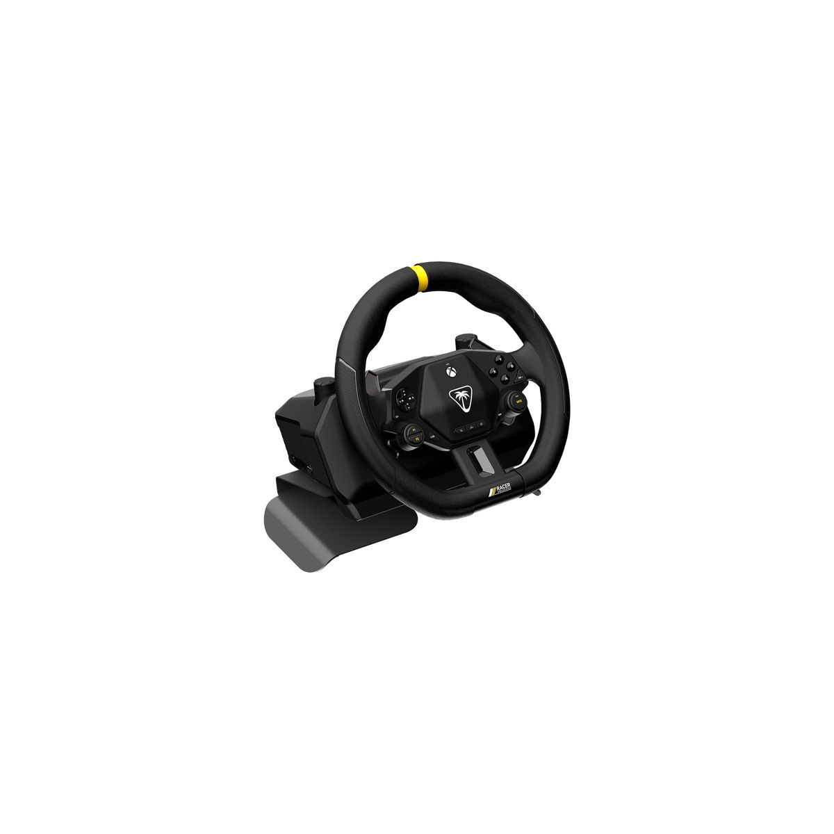 Enjoy wireless racing freedom, officially licensed for Xbox consoles & Windows PCs with the Turtle Beach Racer wireless racing wheel. Racer is a complete, all-in-one system, and connects via 2.4GHz low latency wireless connection with up to 30ft of wireless range and up to 30 hours of battery life. Race from your couch or lock in at a desk or table with either the included non-slip, adjustable lap mount, or integrated table clamps. Designed for your favorite racing titles as a wireless wheel, Racer also features controller mode for use as a wheel in driving games that do not support wheels like Rocket Racing.