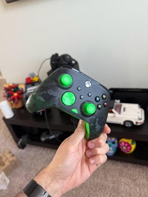 Great controller feels good in the hand and is very similar in feel to the OEM controller. Lightweight and comfortable to hold for long hours. Strong rumble and I like that it’s connected with a wire so I never run out of battery. The wire is also pretty long so you don’t have to sit close to the console to use it. Also has a cool camo and neon green colorway, very eye catching. Wild definitely recommend it.