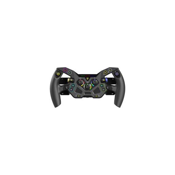 Command the track with the Turtle Beach® VelocityOne™ F-RX formula wheel for VelocityOne™ Race & VelocityOne™ Race KD3 Wheelbases, compatible with Xbox consoles & Windows PCs. Ten mechanical switches with RGB backlighting and five rotary dials provide quick access to critical functions for superior performance. Shift quickly and accurately with two magnetic paddle shifters, two clutch paddles plus a dedicated LED RPM dashboard to ensure every shift is timed exactly right. A quick-release, aluminum design with premium, racing-grade materials gives the F-RX an immersive, realistic feel that works great with any VelocityOne™ K: Drive wheelbase.