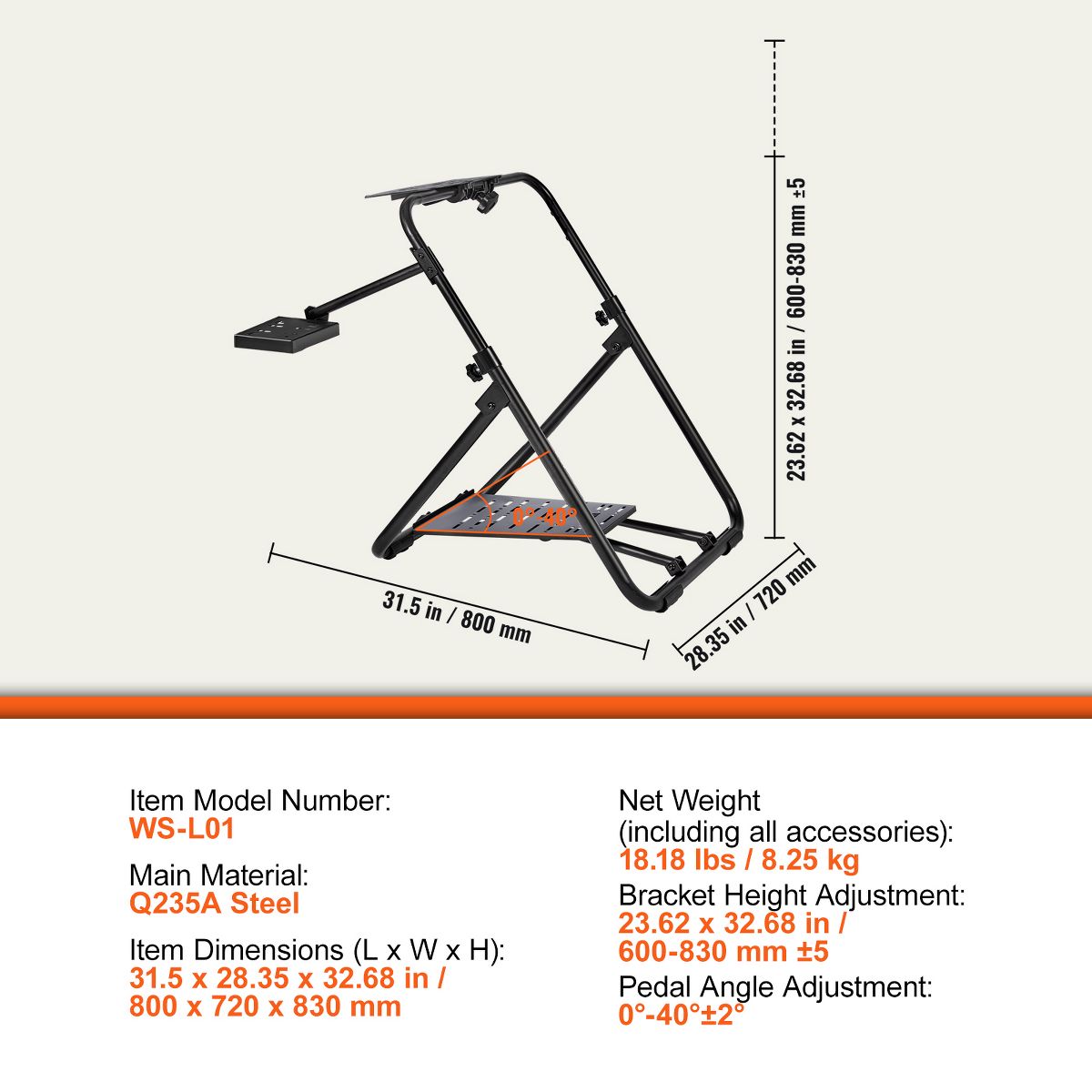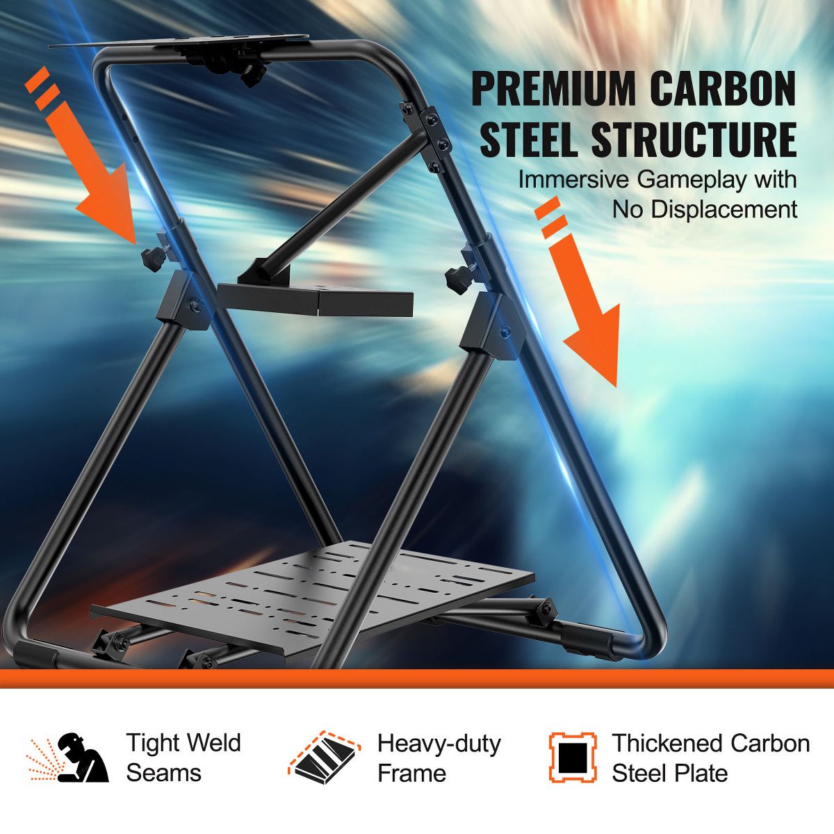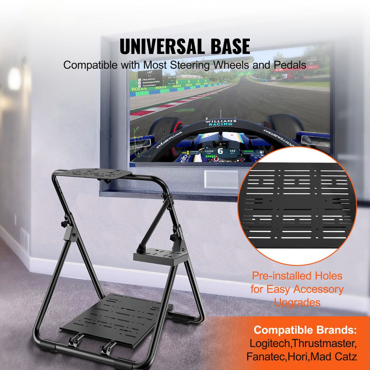 VEVOR Foldable Racing Steering Wheel Stand, Height Adjustable Universal Base Compatible with Logitech & Thrustmaster Racing Wheel and Pedal, Black