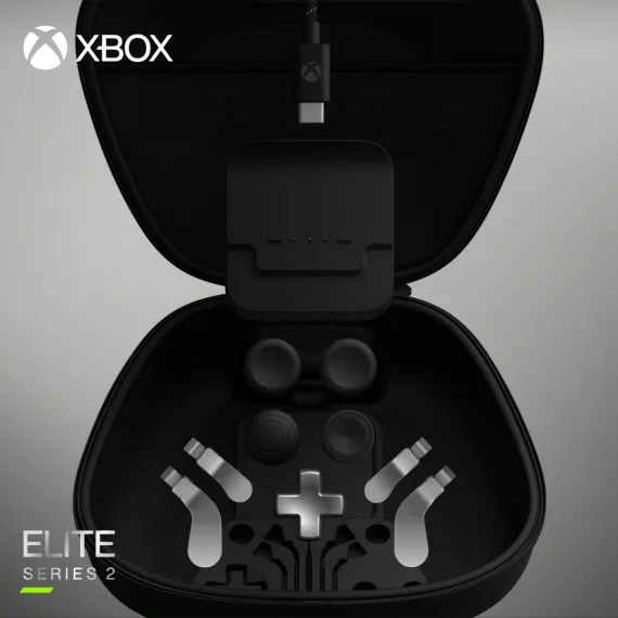Customize your Xbox Elite Wireless Controller Series 2 with the right configuration and components to unleash pro-level precision with the Complete Component Pack, featuring an interchangeable D-pad (standard), interchangeable thumbsticks (2 classic, 1 tall, 1 dome), and paddles (medium, mini). Return to full power while keeping everything stylish and secure with the included carrying case, charging dock, and USB-C cable.