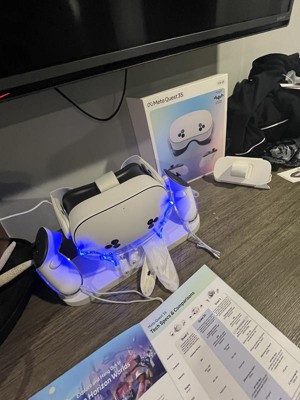 Discover the magic of Meta Quest 3S and get ready to experience your favorite apps in a totally new way. The possibilities are endless when you can blend digital content into your physical space. Watch movies and shows on a vibrant screen that turns any room of your house into a giant theater. Bring games to life in your living room, or step right into the action with full immersion. Hang out with friends from anywhere, but feel like you’re in the same place, watching a concert or meeting up in Meta Horizon. Wireless and light, enjoy out-of-this-world workouts with Quest 3S that make fitness fun. With unreal experiences at an unreal price, where will you begin? See child safety guidance online; Accounts for 10+.