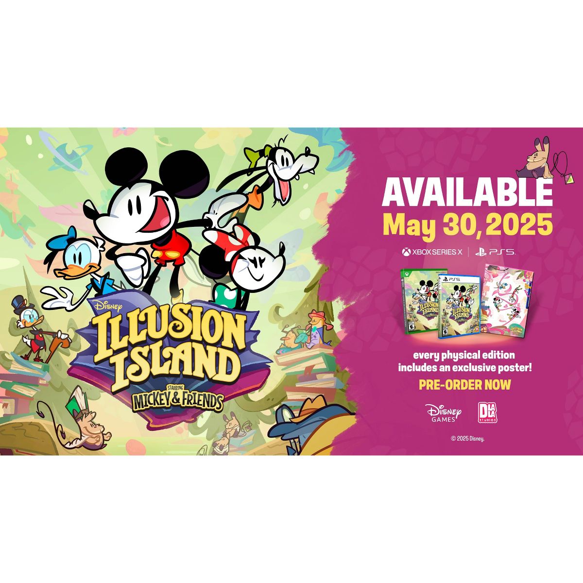 Every Physical Edition comes with an Exclusive Disney Illusion Island Starring Mickey & Friends Poster while supplies last