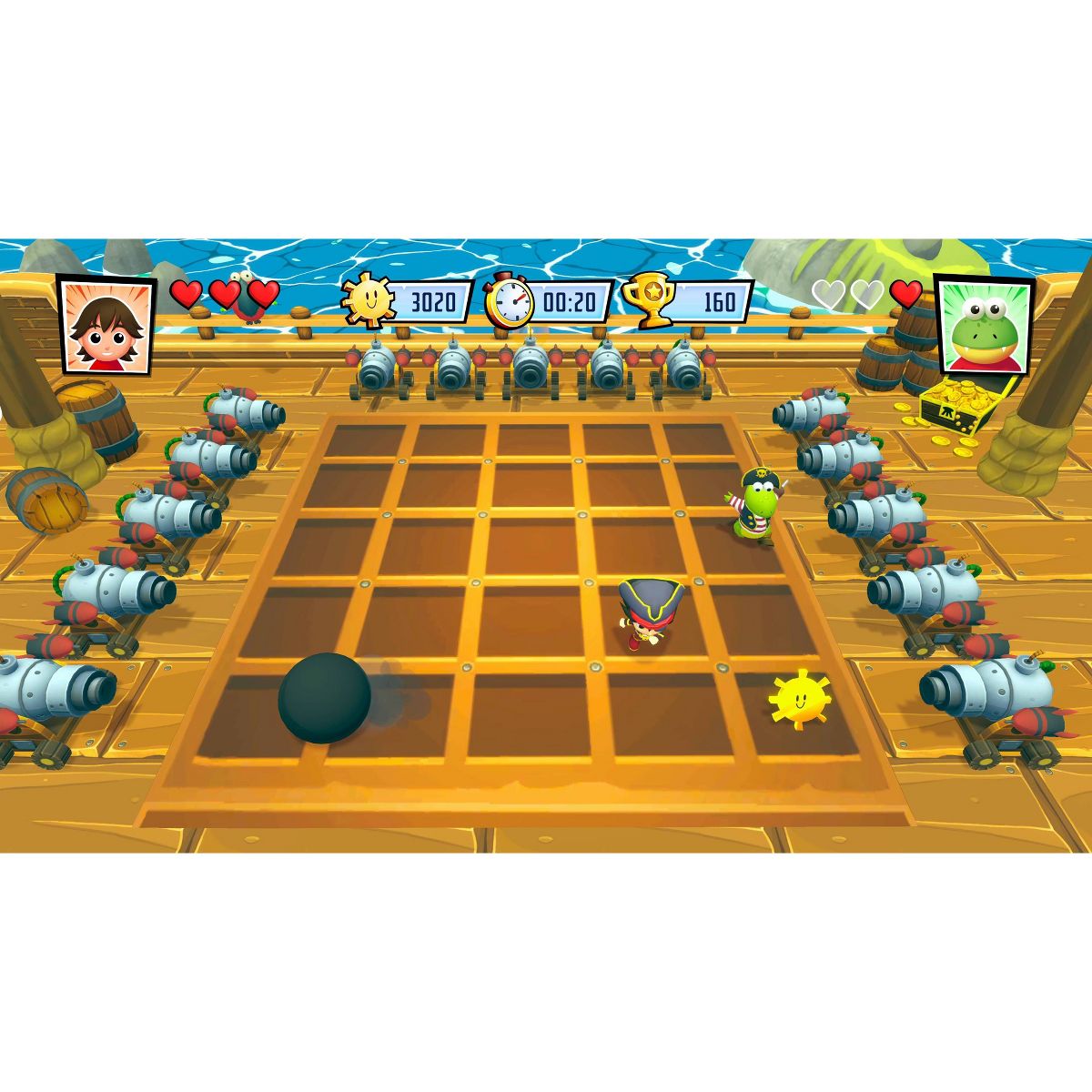 Ryan’s friends have been kidnapped by evil Dark Titan, Robo Combo, and Packrat – and only you can rescue them! Set out on a quest across four exciting worlds packed with slime, spaceship-flying bosses, and Ryan’s Surprise Eggs. Launch yourself in Gill’s barrels, eat Moe’s power-up pizza, and even ride on a giant Shelldon. Give your character a unique style with costumes you can buy in the shop. And play fun minigames like Spaceship Flight and The Floor is Lava. It’s an awesome adventure for one or two players. Can you defeat Dark Titan and his fiendish allies?