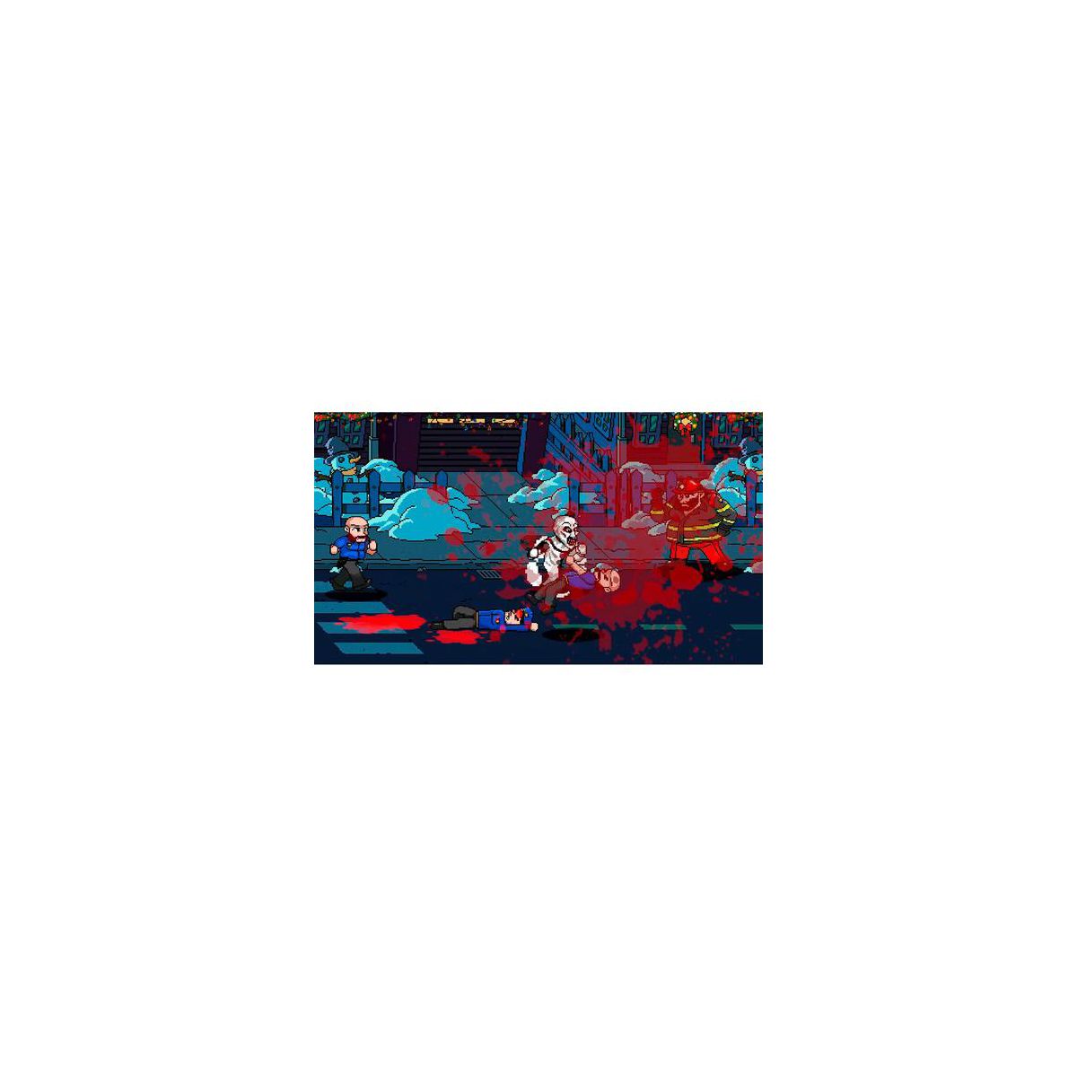 - Gorgeous Pixel Art & Animation: The game captures the essence of the Terrifier films with bright, cartoonish pixel art and fluid animations that vividly depict the gruesome action.