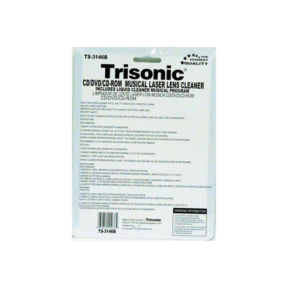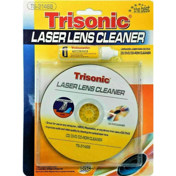 Trisonic LASER LENS CLEANER Cleaning Disc w/Fluid Xbox, Playstation, Bluray Discs