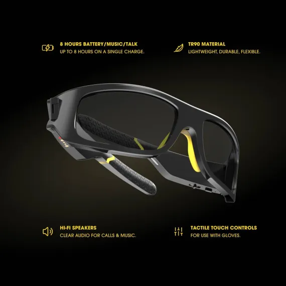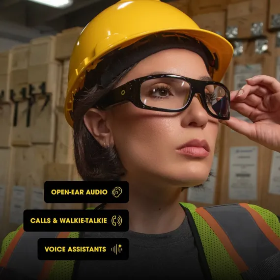 Lucyd Armor is the ultimate smart eyewear designed for safety professionals, active individuals, and tech-forward users who demand both protection and connectivity. ANSI Z87.1-certified lenses ensure high impact resistance and crystal-clear optics, making Armor the perfect companion for construction sites, workshops, and outdoor activities. With 2 speakers and a noise-canceling microphone, you can stay connected on the job or while exercising—taking calls, listening to music, and using voice apps—without reaching for your phone. Engineered with TR90 temples, design for all-day comfort, Armor offers the perfect balance of style, durability, and intelligence. Effortlessly access smart features like ChatGPT for hands-free assistance, and control apps like Uber, Venmo, stock tracking, and more.