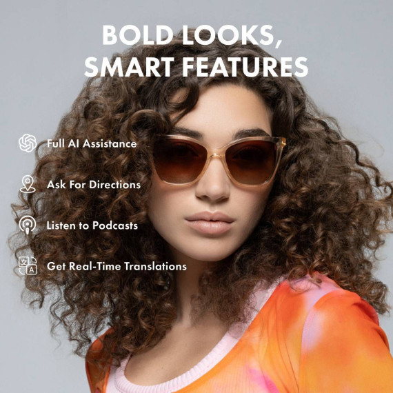 Step into the future with Millennia, an elegant blend of style and advanced functionality. Featuring brown gradient polarized UV400 lenses, a champagne crystal front and striking high-gloss ivory temples, these smart glasses provide optimal eye protection with a large range of seamless smart features. The sleek, transparent frame paired with gradient lenses offers a sophisticated look. Designed for the modern woman, the TR90 temples and spring hinges ensure all-day comfort without sacrificing durability. Whether you're commuting, working out, or enjoying outdoor adventures, Millennia keeps you connected with four speakers, two microphones, and instant access to the Lucyd AI app, powered by voice-controlled ChatGPT. Experience hands-free calls, music, and voice assistant integration, all with Bluetooth 5.2 connectivity and IPX4 water resistance.