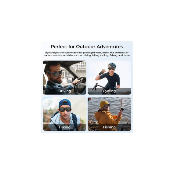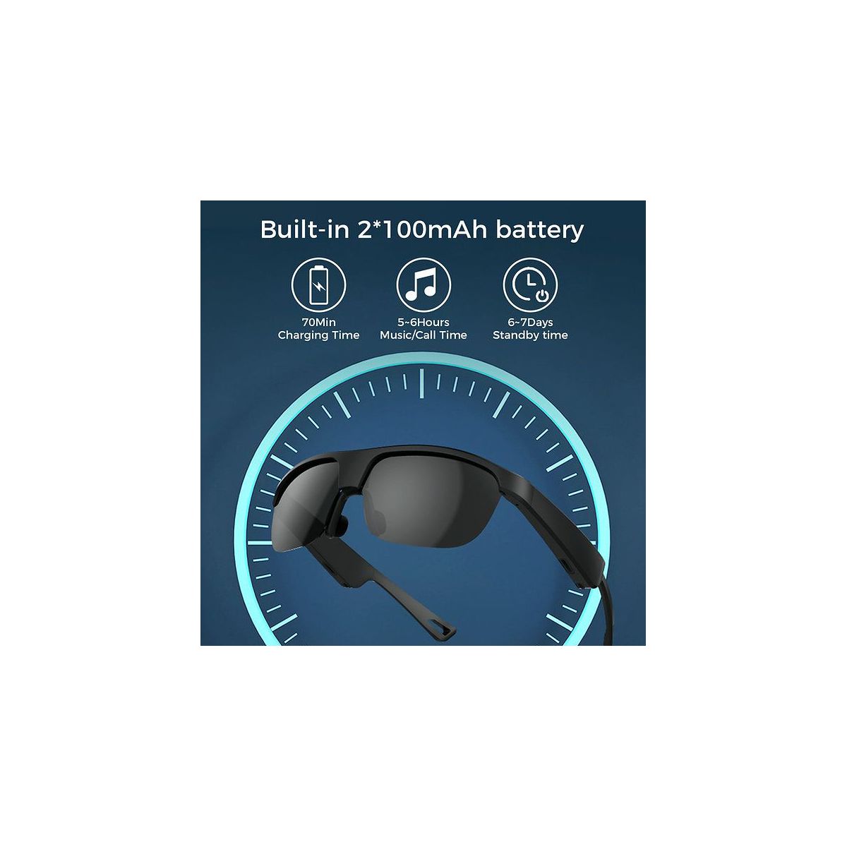 The G02 Smart Glasses are the ultimate blend of technology and outdoor performance, featuring UV400 polarized lenses that restore true colors, and ensuring crystal clear vision. The lenses provide optimal eye protection by blocking harmful UVA/UVB rays and other damaging light sources- keeping your eyes healthy, comfortable and protected- ideal for outdoor activities like driving, boating, or skiing. Bluetooth 5.3 connection ensures crystal-clear calls and seamless and stable audio connection up to 30 feet away. The built-in 360° stereo speakers and open-air design provide long lasting comfort. The upgraded microphone brings clear communication and immersive sound on-the-go. These have over 5 hours of battery life and recharge in just 70 minutes. Made from light/robust TR90 material, offering enhanced Durability for everyday use - the IP65 waterproof rating will handle all weather conditions, sweat, and outdoors effortlessly- Perfect for outdoor activities and daily routines.