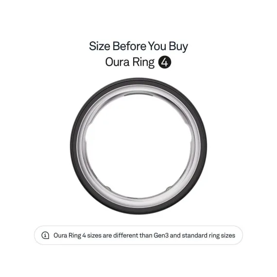 Oura Ring sizes are different from standard ring sizes. It’s important to find your size before you purchase Oura Ring 4. Find your size by purchasing an Oura Ring 4 Sizing Kit on Target.com.