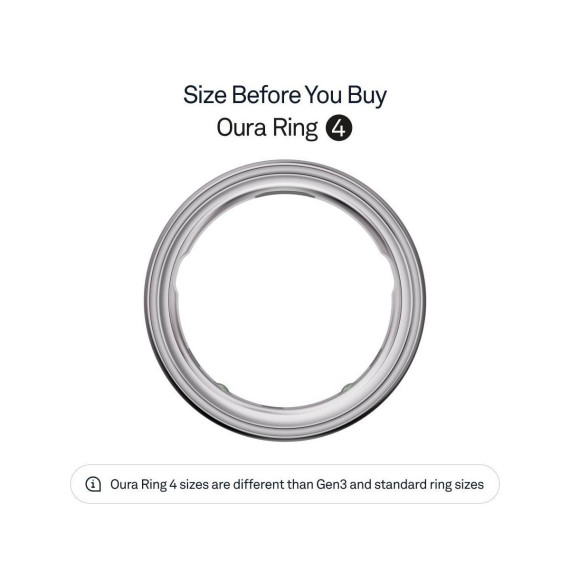 Oura Ring sizes are different from standard ring sizes. It’s important to find your size before you purchase Oura Ring 4. Find your size by purchasing an Oura Ring 4 Sizing Kit on Target.com.