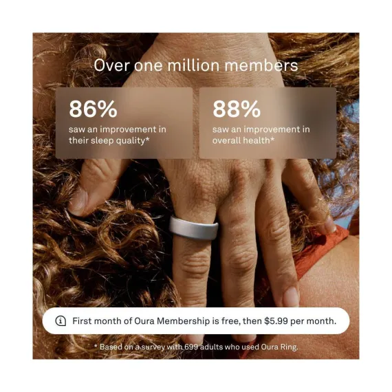 Introducing Oura Ring 4: the latest evolution of the revolutionary smart ring. Oura Ring 4 brings you closer to what matters most — your health. The updated all-titanium design is powered by Smart Sensing, a new sensing platform that doesn’t just measure your biometrics, it adapts to you, providing insights into over 50 health metrics including sleep, readiness, activity, heart health, stress and women’s health. Oura Ring quietly and comfortably monitors your health and with up to 8 days of battery life — you can forget it’s even on.