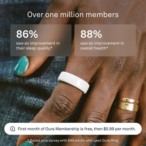 This colorful new take comes with the same cutting-edge technology of Oura Ring 4. Track over 50 health metrics and get personalized insights into your sleep, activity, readiness, stress, heart health, metabolic health, women's health and more. It is built around a breakthrough sensing technology, Smart Sensing, which adapts to your finger to deliver accurate, continuous data. With 5-8 days of battery life, you'll see a complete picture of your health. It's designed with recessed sensors on the interior, making it comfortable and gentle, even on sensitive skin. Oura Ring 4 Ceramic comes in sizes 4-15 and three stunning finishes to fit your style and your finger, effortlessly.