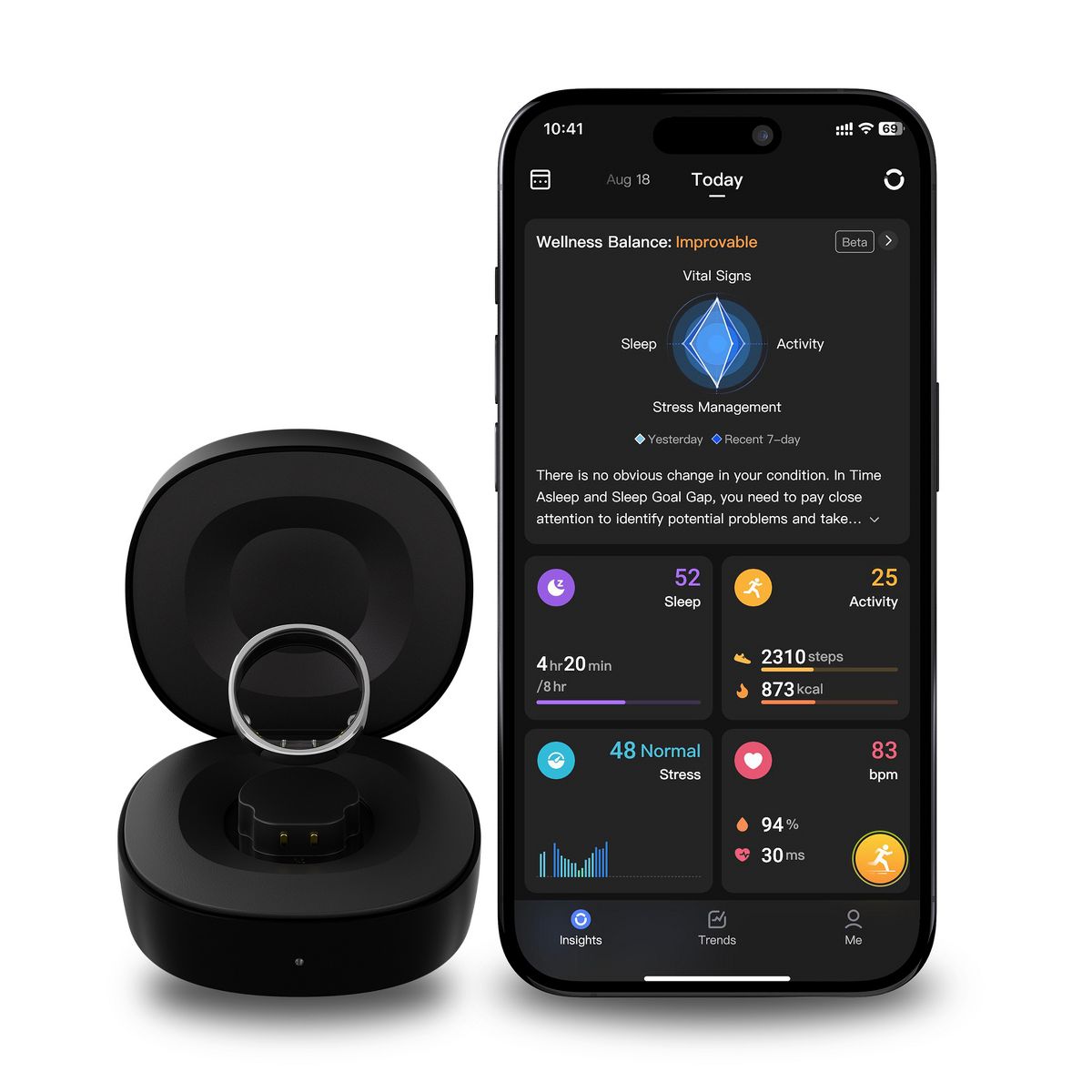 The RingConn® Gen 2 redefines health tracking. It is a full-featured smart ring designed for seamless, everyday wear. The digital ring offers automatic sleep apnea monitoring to help you optimize rest and an ultra-slim, lightweight build that merges comfort with style. You also get an impressive 10 to 12 days of battery life (up to 150 days with its portable charging case), quick charging, and with our RingConn® EcoPower technology, we've refined optical pathways and enhanced algorithms to achieve reduced power consumption while maintaining familiar performance levels. Best of all, you’ll get comprehensive monitoring with no subscription fees. Please note - before you order, be sure to review the Sizing Guide, as seen in the images section, as RingConn® ring sizes are different than those used in the US. Or better yet, size before you buy so you’ll know for sure - order the Gen 2 Ring Sizing Kit first, sold separately...