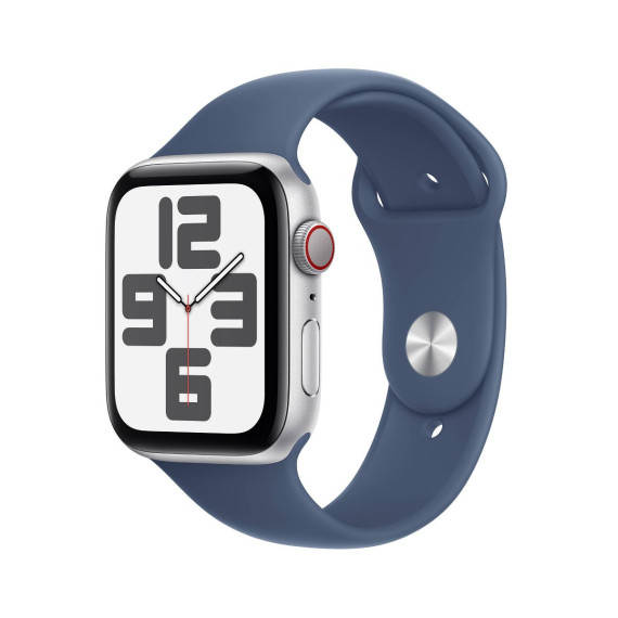 Apple Watch SE GPS + Cellular (2024) 44mm Silver Aluminum Case with Denim Sport Band - M/L