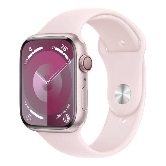 Apple Watch Series 9 GPS + Cellular (2024) 45mm Pink Aluminum Case with Light Pink Sport Band - M/L