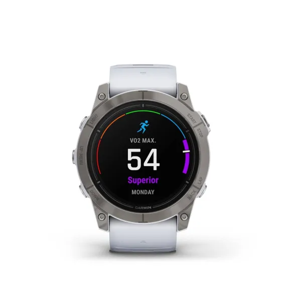 All day, every day — the epix™ Pro - Sapphire Edition smartwatch helps you conquer every hour. This ultimate high-performance smartwatch features a stunning AMOLED display. Go longer between charges with up to weeks of battery life in smartwatch mode. Rise to any challenge with advanced training features; hill score measures your climbing performance over time, and real-time stamina updates gauge your stamina potential. The bright LED flashlight provides convenient illumination when you need it. Take an ECG from your wrist when you want (not available in all regions; must be 22 years or older). Prioritize your mental and physical wellness with 24/7 health monitoring features such as advanced sleep tracking, HRV status and more (data presented is intended to be a close estimation of metrics tracked). Navigate with preloaded TopoActive maps and ski resort maps; download even more regions for global adventures. Gain superior positioning accuracy in any environment while optimizing battery life, thanks to multi-band and multi GNSS with SatIQ™ technology.