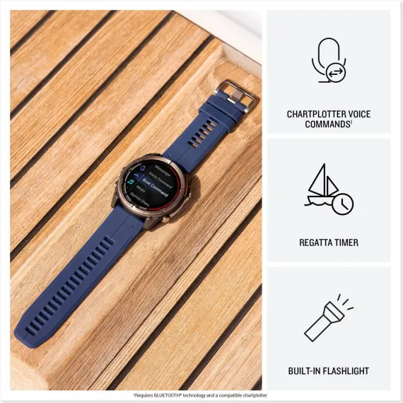 Garmin Quatix 8 AMOLED 51mm Sapphire Titanium Bezel Smartwatch with Captain Blue Silicone Band