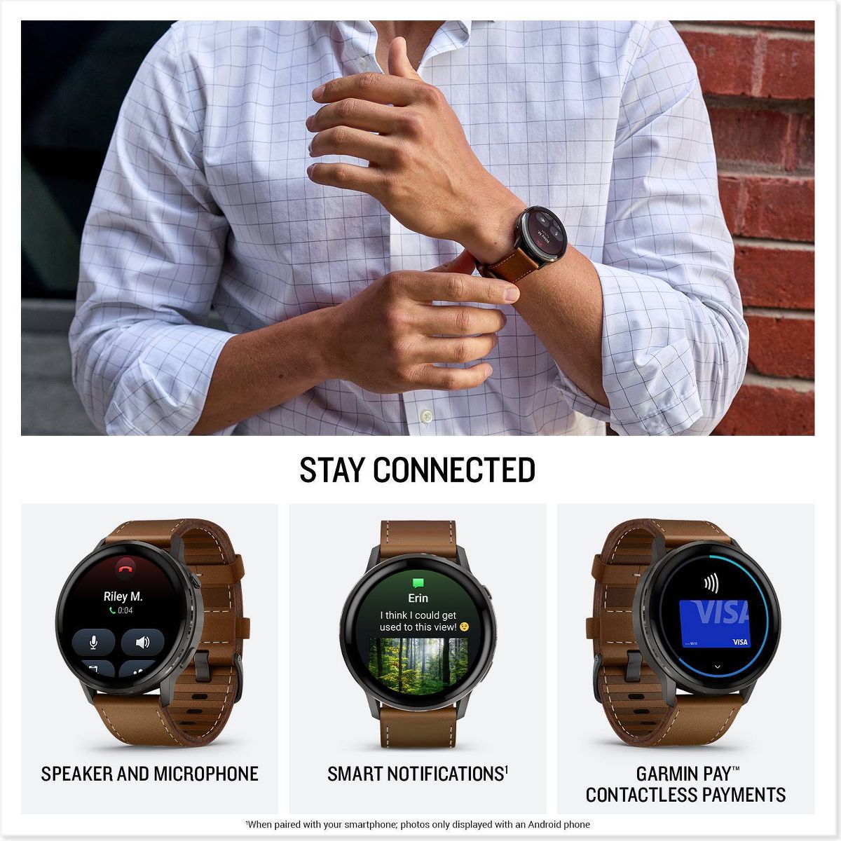 Garmin Venu 4 Smartwatch with Silicone and Leather Band Black/Brown