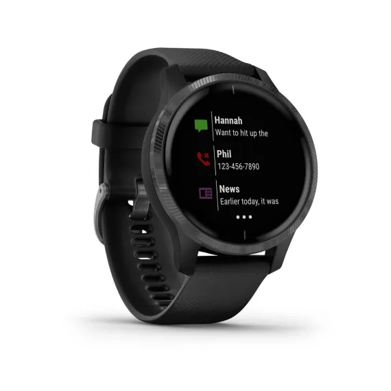 Beautiful. Detailed. Alive. The Venu™ GPS smartwatch features a bright, beautiful display and a battery life of up to five days, so you can spend more time doing the activities you love. Get on-screen, animated cardio, strength, yoga and Pilates workouts right on your wrist. With the broadest available range of all-day health monitoring features — including respiration tracking, Body Battery™ energy monitor, stress and more — Venu can show you the full picture of your health in vivid detail. Keep your phone and wallet at home, because this watch lets you download music for phone-free listening and pay from the wrist using Garmin Pay™ contactless payment solution (available for supported cards from participating banks).