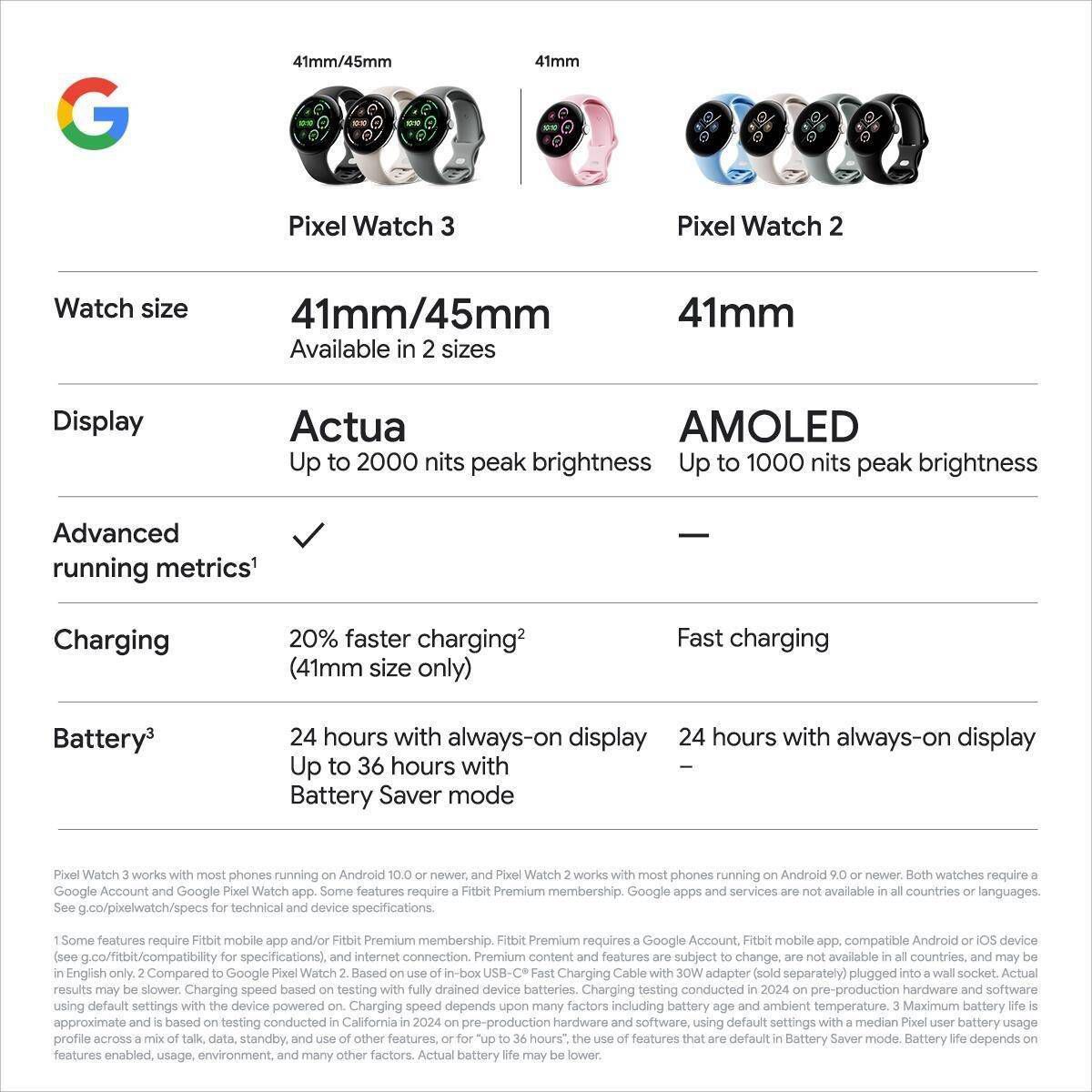 ²Compared to Google Pixel Watch 2.