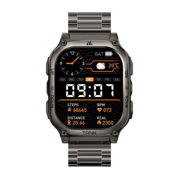 Built for durability, the KOSPET® TANK M3 Special Edition Smartwatch is MIL-STD-810H certified and offers 170+ sports modes, G-sensor, 5 ATM waterproofing, always-on time display, and Bluetooth® calling. The Special Edition comes with 2 kinds of removeable straps – silicone and stainless steel. Other features include a polyamide, glass fiber, and stainless steel bottom case, zinc-alloy body, stainless steel band, Corning® Gorilla® Glass screen, and long battery life - all in a sleek, rounded-edge rectangle form. It is a reliable swimming and fitness smartwatch for active daily use with smart recognition of 6 sports movements. It also tracks heart rate, blood oxygen, blood pressure, sleep stages, and more.