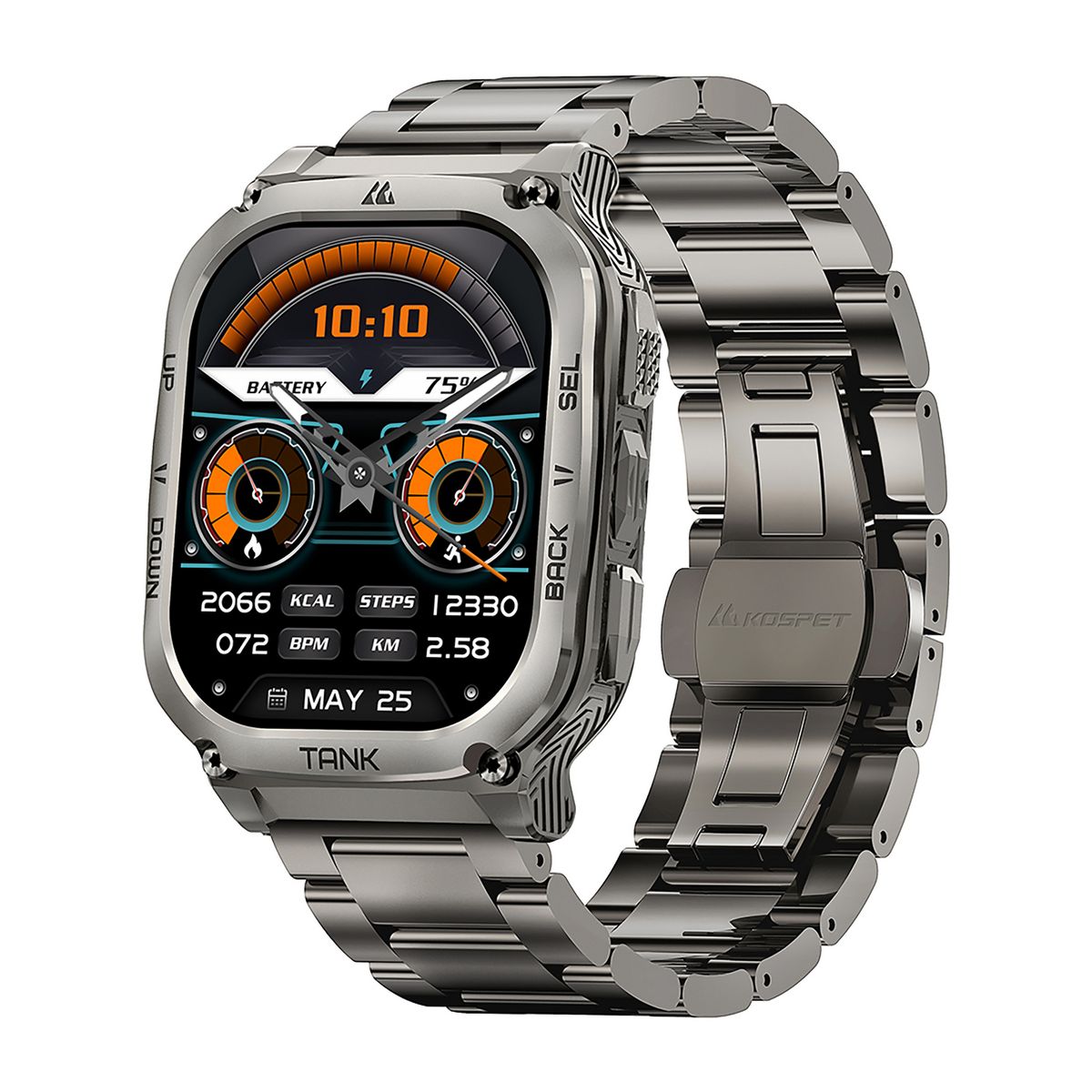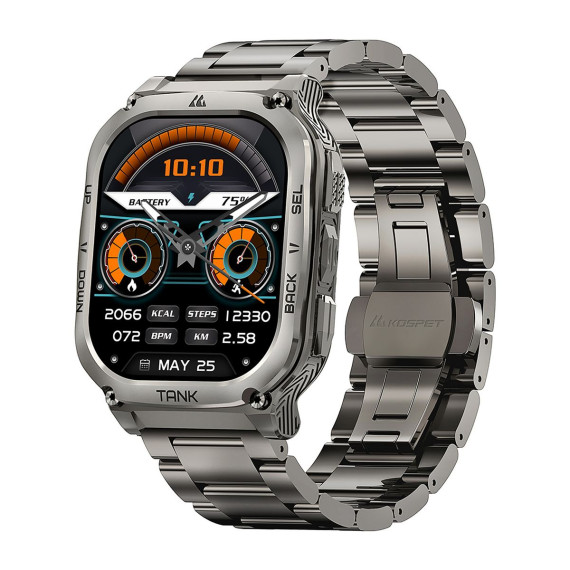 KOSPET® TANK M3 Special Edition 1.96-In.-AMOLED Smartwatch with Stainless Steel Band (Black)