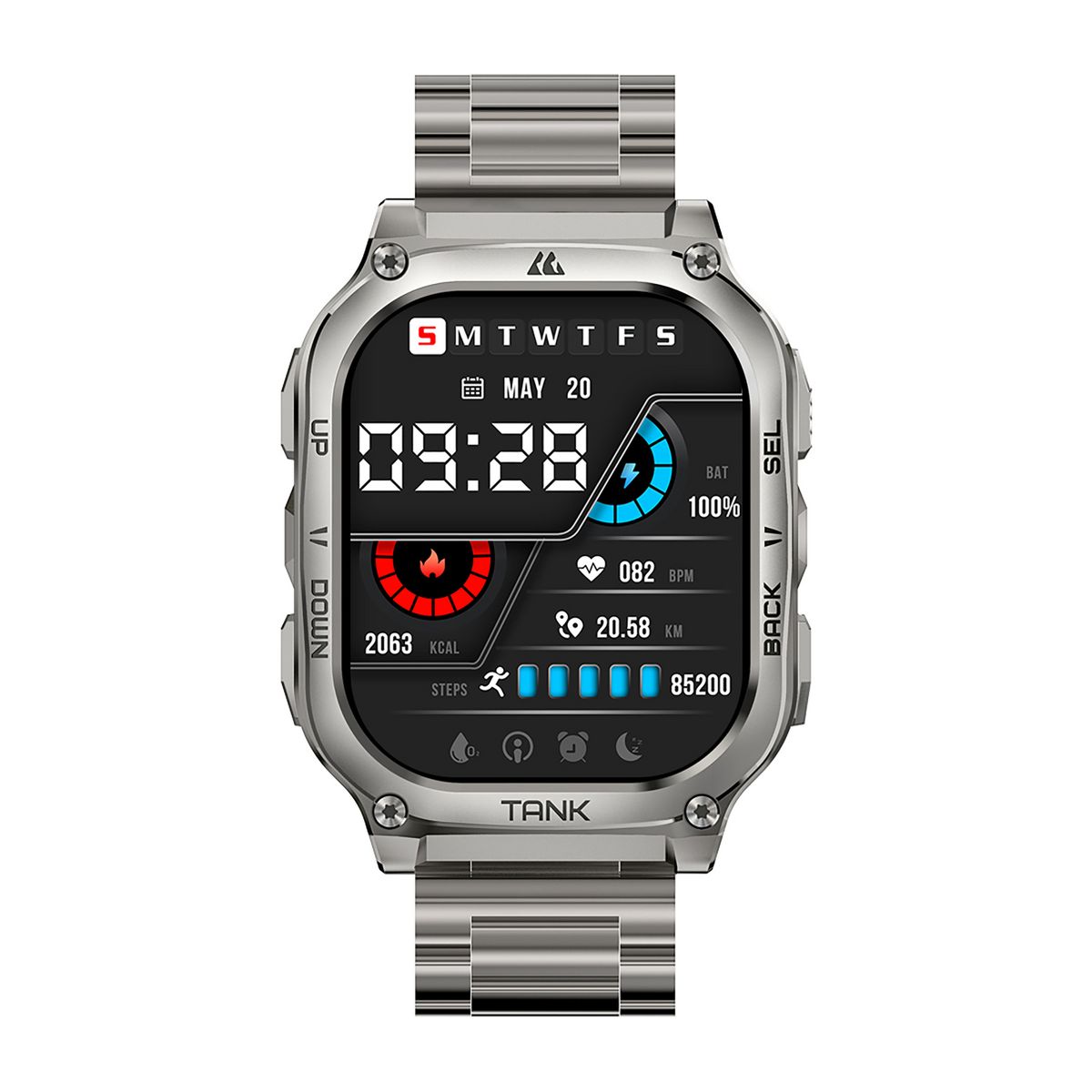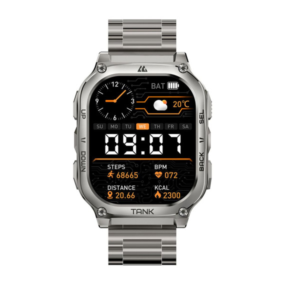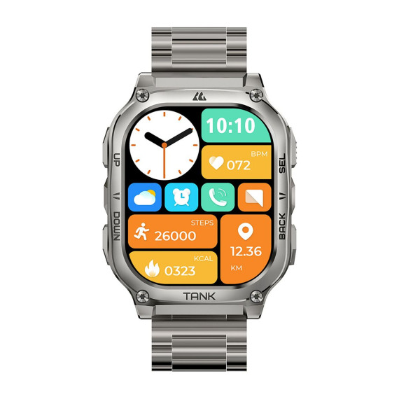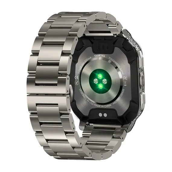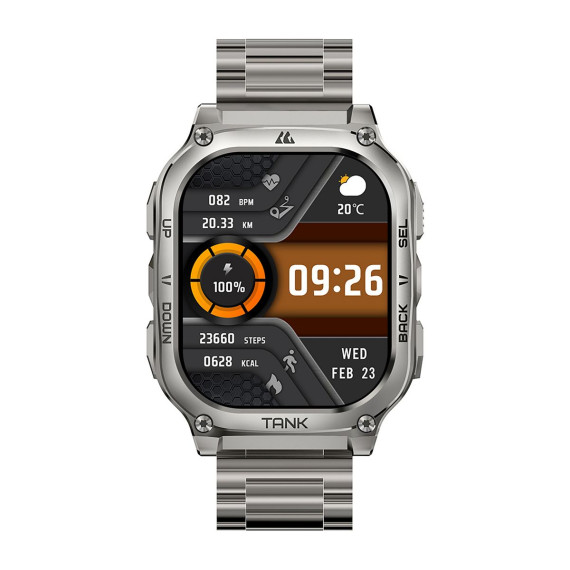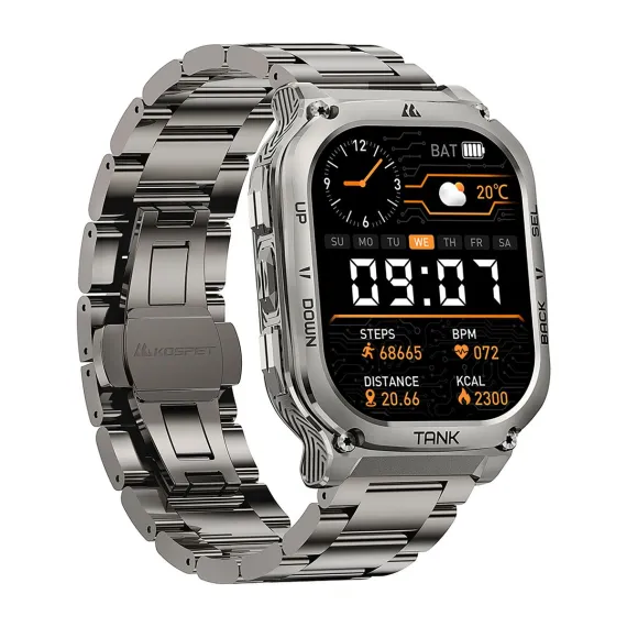 Built for durability, the KOSPET® TANK M3 Special Edition Smartwatch is MIL-STD-810H certified and offers 170+ sports modes, G-sensor, 5 ATM waterproofing, always-on time display, and Bluetooth® calling. The Special Edition comes with 2 kinds of removeable straps – silicone and stainless steel. Other features include a polyamide, glass fiber, and stainless steel bottom case, zinc-alloy body, stainless steel band, Corning® Gorilla® Glass screen, and long battery life - all in a sleek, rounded-edge rectangle form. It is a reliable swimming and fitness smartwatch for active daily use with smart recognition of 6 sports movements. It also tracks heart rate, blood oxygen, blood pressure, sleep stages, and more.