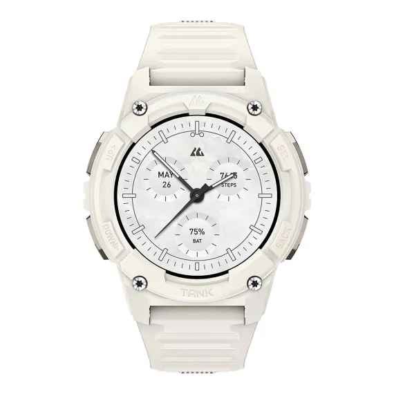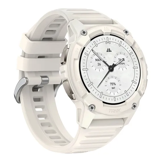 KOSPET® TANK S2 1.32-In. AMOLED GPS Smartwatch with Silicone Band (Lily White)