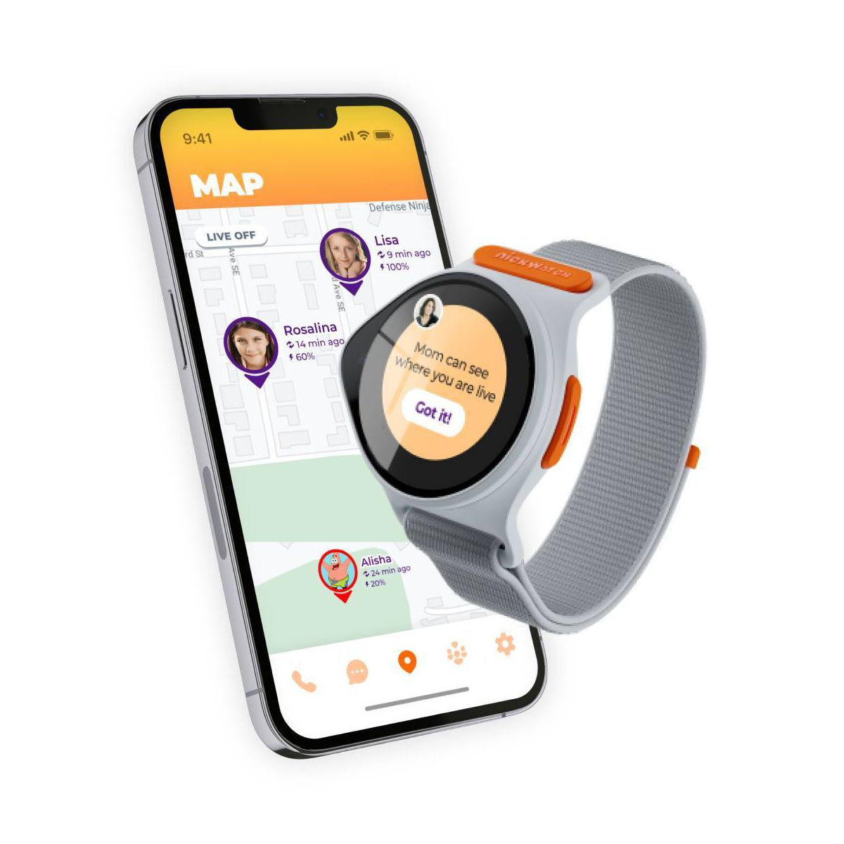 Call & Text with GPS Tracker - Featuring popular Nickelodeon characters like SpongeBob, Patrick Star, and Ninja Turtles, this kids GPS tracker watch offers fun and safety in one. Designed with a comfortable strap and durable, water-resistant construction, it’s a kids cell phone watch trusted by parents and adored by kids. Stay connected with this kids smart watch with GPS tracker that’s perfect for active, tech-savvy children.