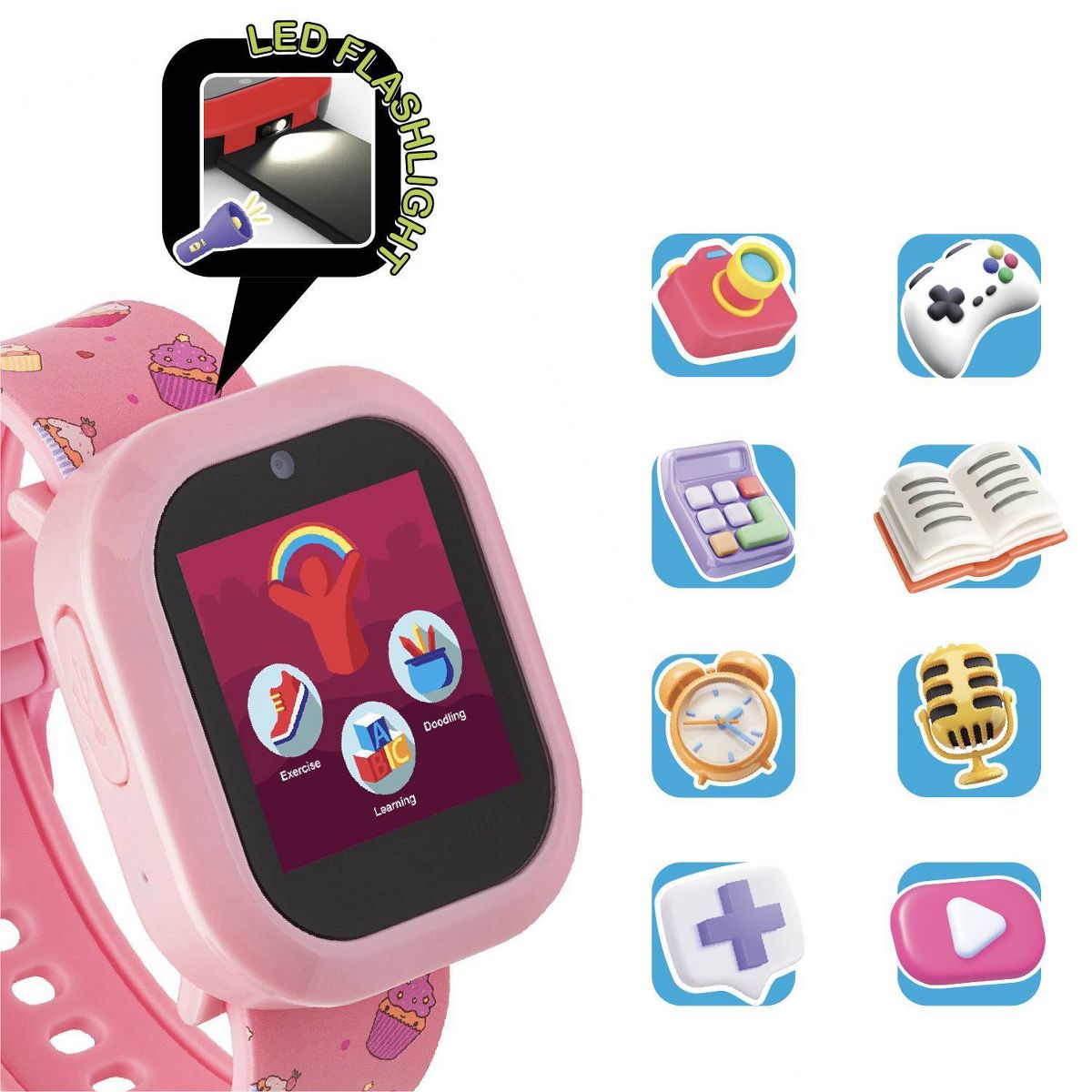 Playzoom V3 kids smartwatch & wireless headphones have amazing features, including fun selfie camera, voice recorder, photo effects MP3 player, audiobooks, stopwatch, alarm, timer and calendar. The wireless headphones have high-fidelity audio and Bluetooth technology for wireless audio streaming. Rechargeable battery offers 4 hours of play. Soft touch controls on ear cups to adjust volume and answer calls. Plush earpads and headband for perfect fit and long-lasting comfort. The watch does not connect to a cellular device and is kid safe!