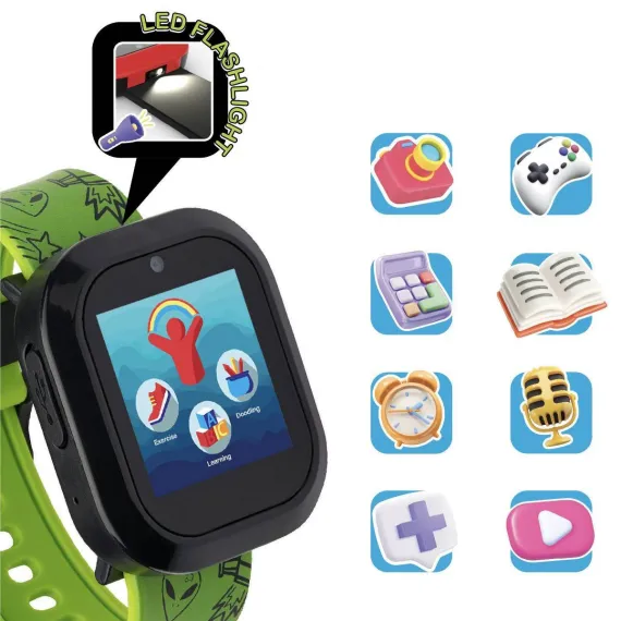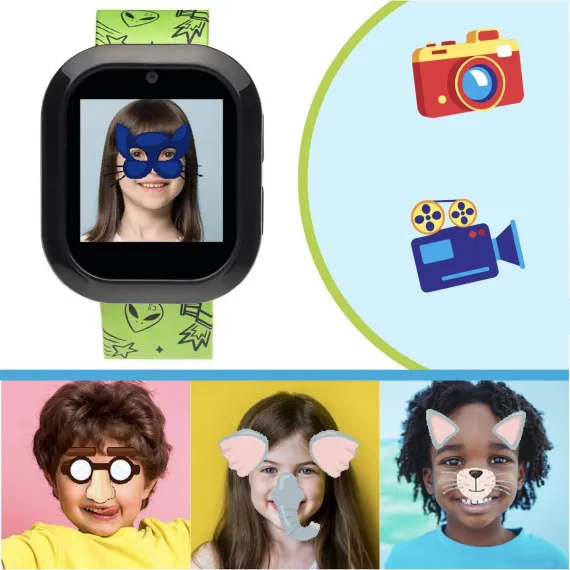 Playzoom V3 kids smartwatch & wireless speaker have amazing features, including fun selfie camera, voice recorder, photo effects MP3 player, audiobooks, stopwatch, alarm, timer and calendar. The Playzoom wireless speaker is a unique and fun Bluetooth powered device that provides powerful, vibrant sound. It has a rechargeable battery with a long-lasting capacity of up to 2-3 hours of continuous-play. Compatible with all devices having a Bluetooth connection, and can also be used to play/pause music/answer/end call. The watch does not connect to a cellular device and is kid safe!
