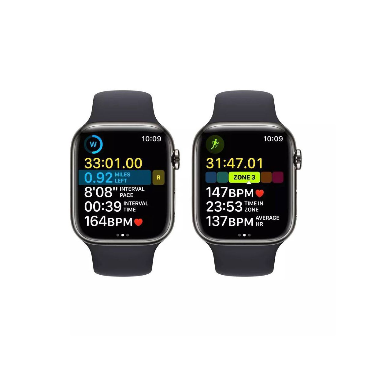 Apple Watch Series 8 features advanced health sensors and apps, so you can take an ECG,¹ measure heart rate and blood oxygen,² and track temperature changes³ for advanced insights into your menstrual cycle.⁴ And with Crash Detection, sleep stages tracking, and advanced workout metrics, it helps you stay active, healthy, safe, and connected.